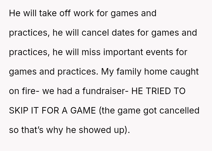 Given the severity of the injuries, financial strain, and emotional labor imposed on the poster, was her request for him to stop playing a reasonable boundary to protect the relationship, or was it an unfair demand that disregarded his core ident*ty and pa*sion?