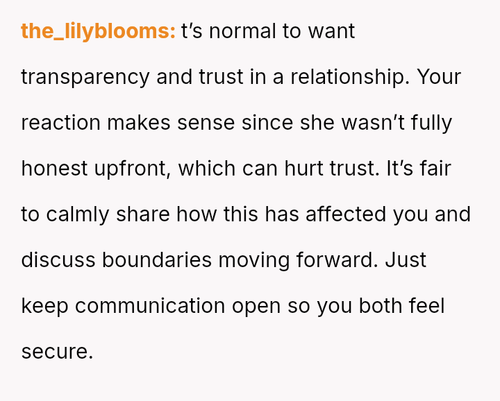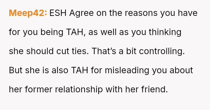 Now, the core conflict is the OP's discomfort with his girlfriend maintaining a friendship with this man versus his acceptance of her explanation for the initial dishonesty.