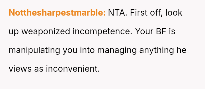 This conflict stems from the boyfriend feeling inadequate and overshadowed by the OP's financial independence, while the OP feels her financial autonomy is being challenged.