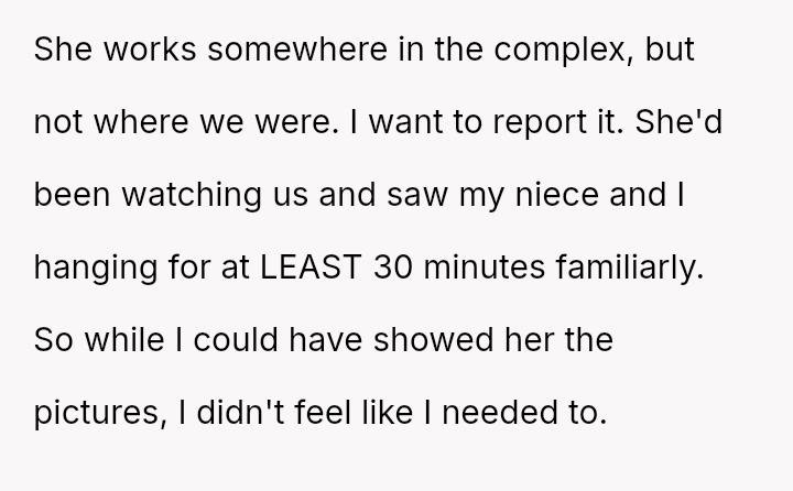 Given the clear evidence provided to law enforcement and the stranger's demonstrable overreach, is the OP justified in formally reporting the woman's actions to the facility management, or does doing so represent an overreaction to an isolated, albeit alarming, incident?