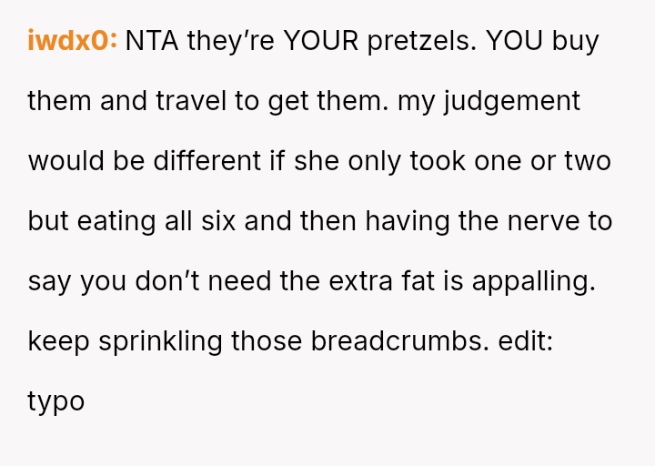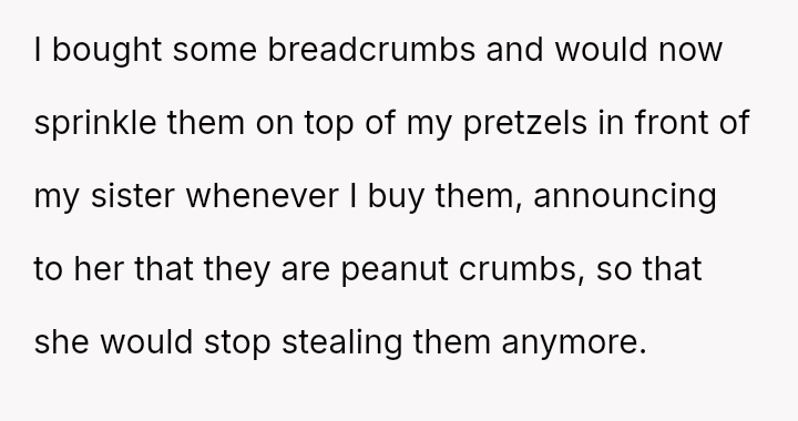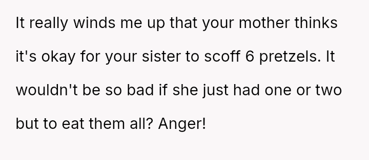 Despite the long journeys and the teasing from her younger sister, these pretzels are a rare comfort, a taste of joy she fiercely protects from the one person who should be an ally in her world.
