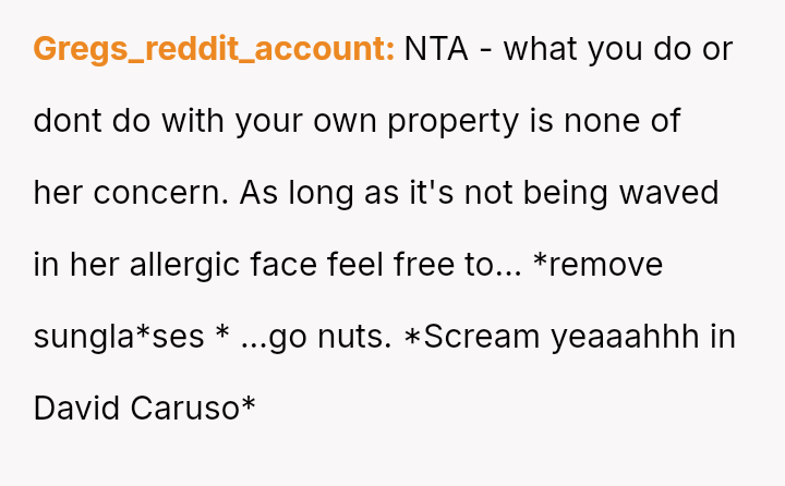 In response to feeling v***ated and unheard, the OP resorted to deceptive tactics involving a mild allergen to protect her property and es**blish boundaries.