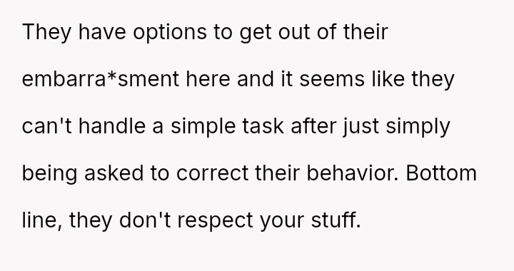 The core conflict lies between the OP's need to protect their essential property and their children's perceived lack of consideration or maturity regarding household boundaries.