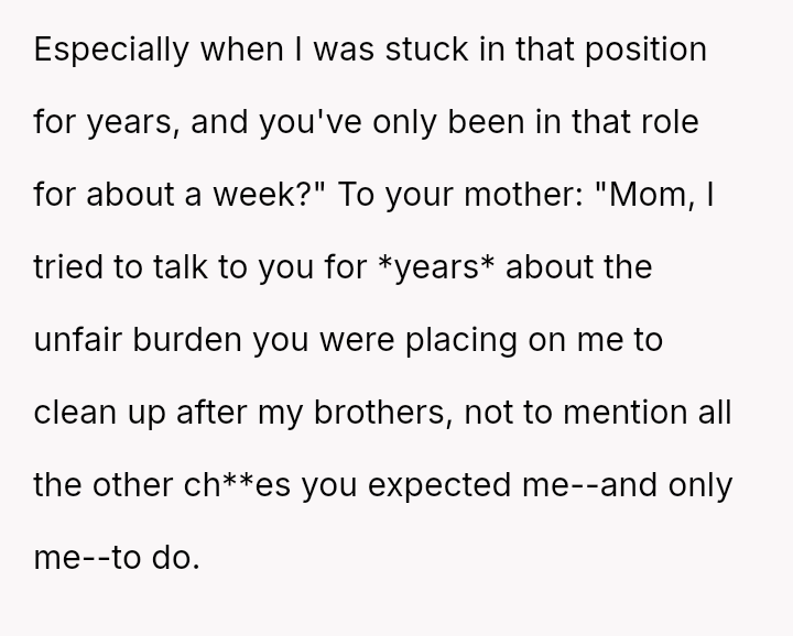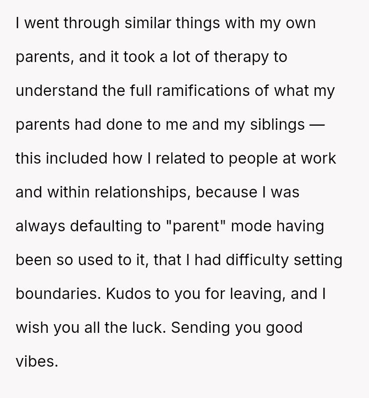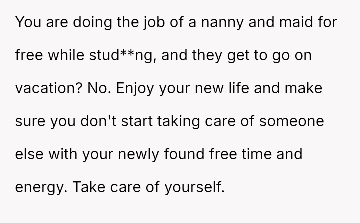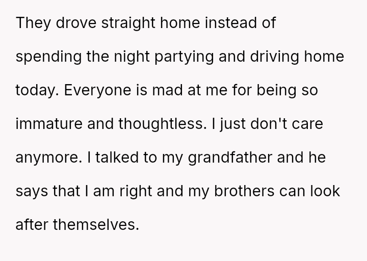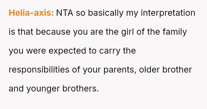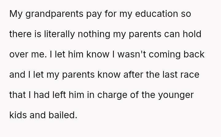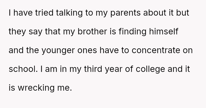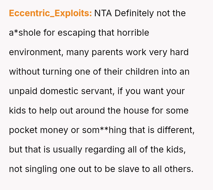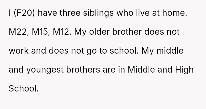 Given the OP has es**blished independent financial support for her education and secured alternative housing, was her sudden departure a necessary act of self-liberation, or was it an overly harsh m**hod of communication that unfairly shifted the entire household burden onto her siblings?