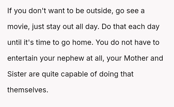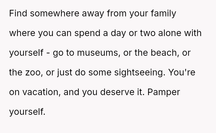 Considering the OP's stated financial contribution and known introversion against the family's expectation that the OP should happily provide constant entertainment and childcare, is the OP being unreasonable for prioritizing their own mental well-being and the purpose of their vacation?