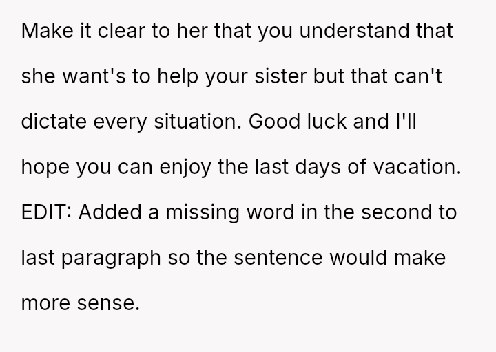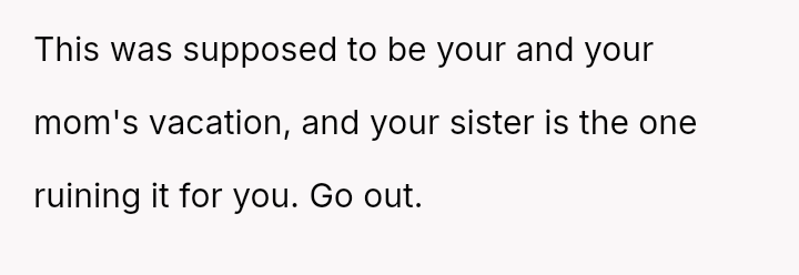 She watched as her mother’s generous spirit was stretched thin, and her sister’s neediness threatened to consume the very moments she had fought so hard to claim for herself.