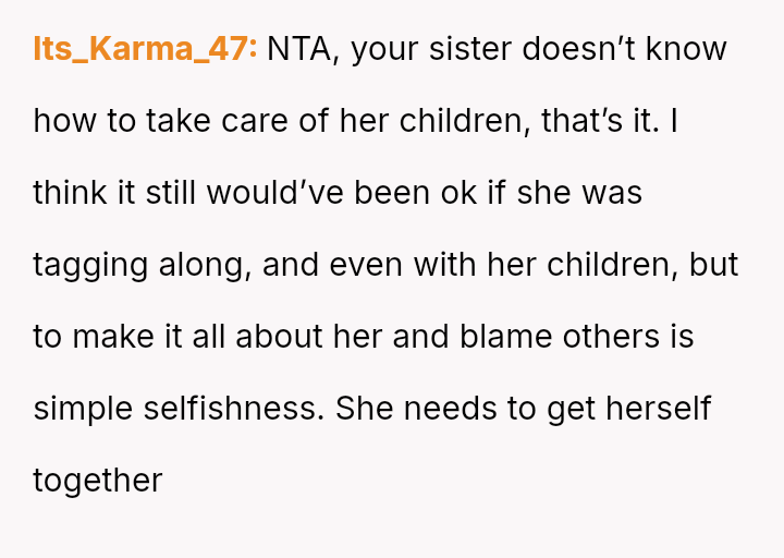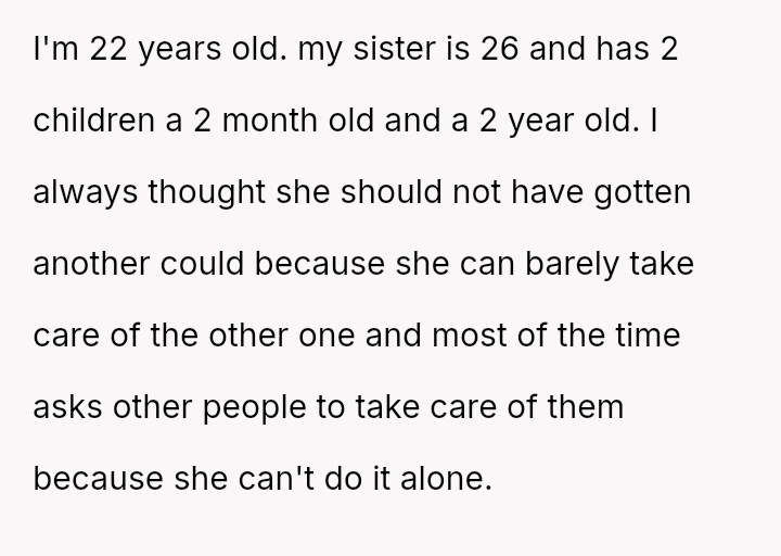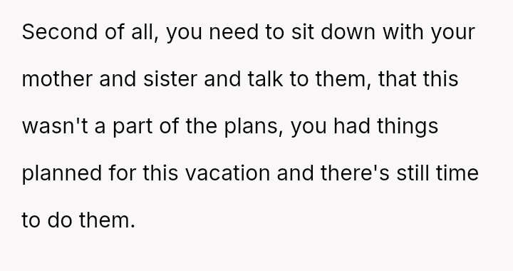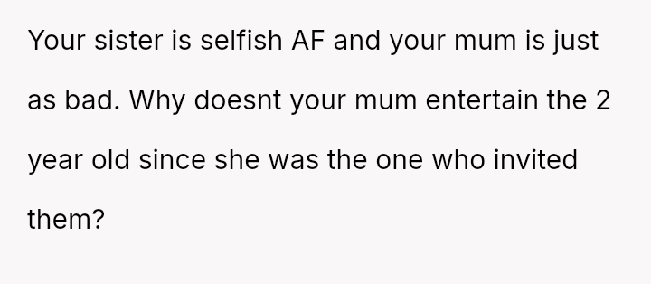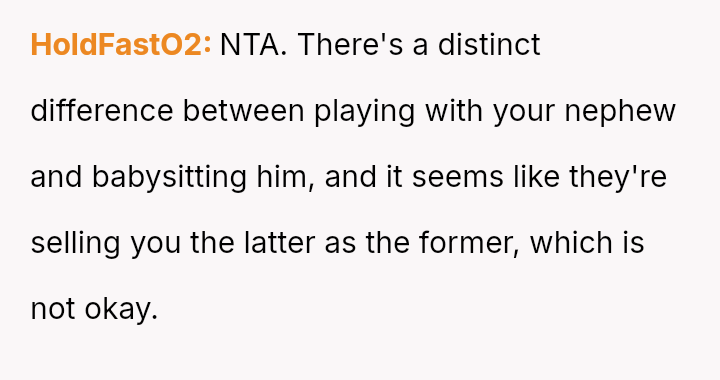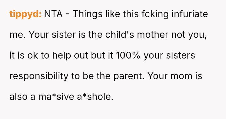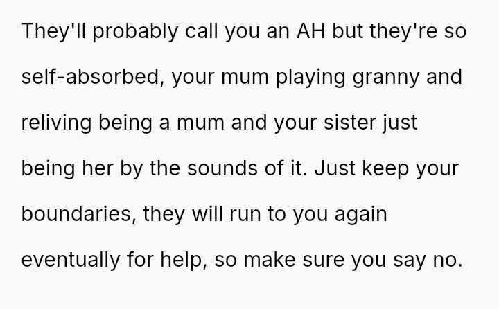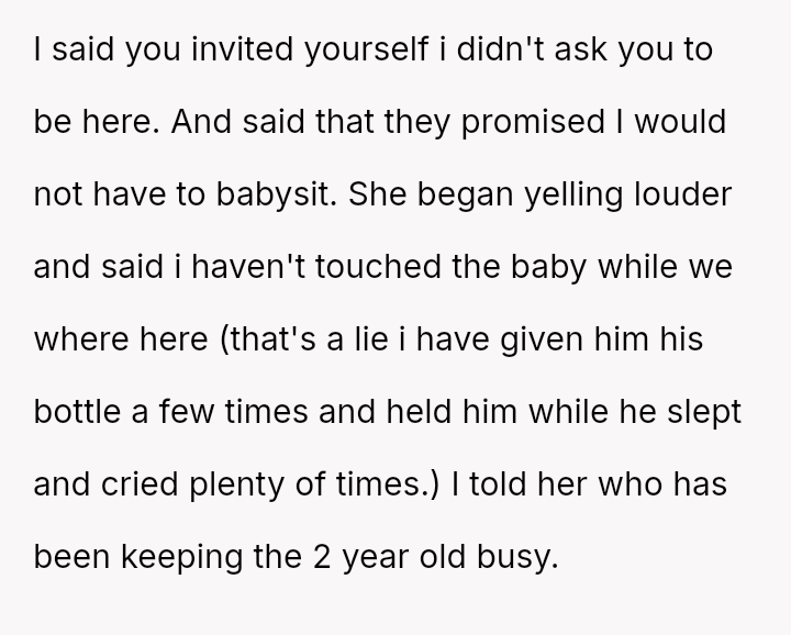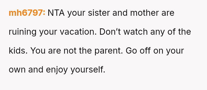 The central conflict lies between the OP's financial investment and personal need for rest, versus the expectations set by their mother and sister that the OP would a*sume the role of primary caretaker for the two young children.
