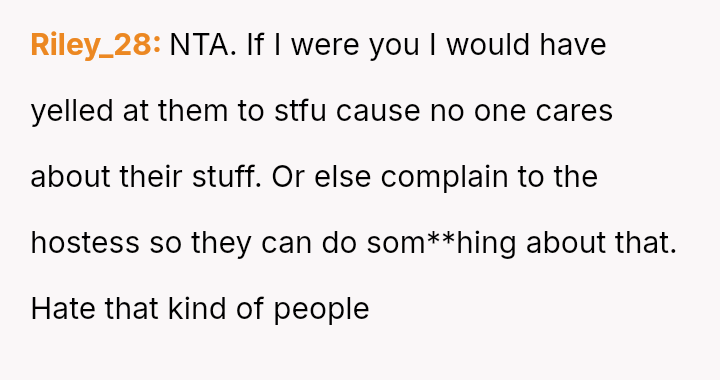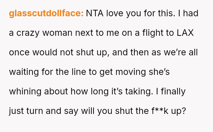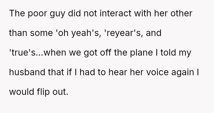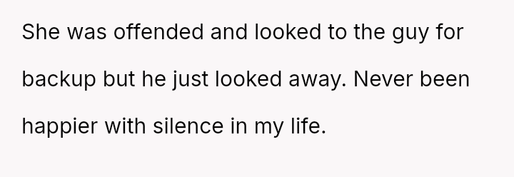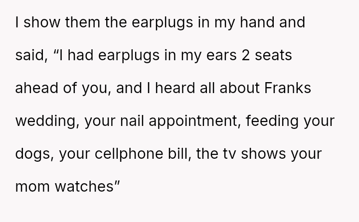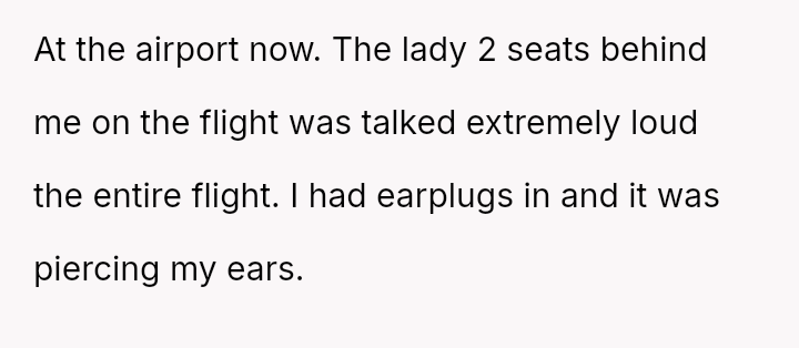 The torment of forced proximity to loud, invasive chatter left a deep mark, igniting a confrontation born from desperation and a need for peace.