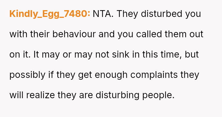 Was the OP's direct intervention an appropriate defense of their personal space, or did it cross the line into unnecessary public shaming?