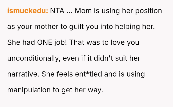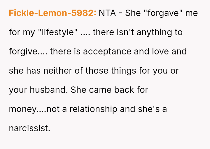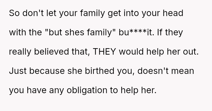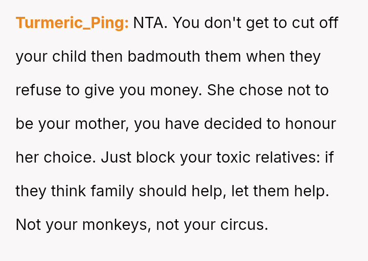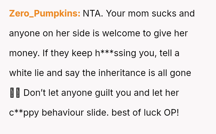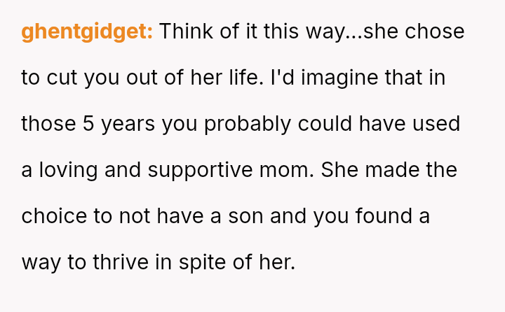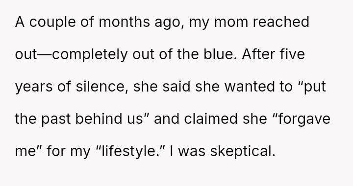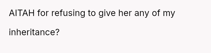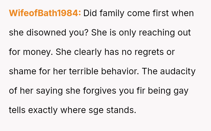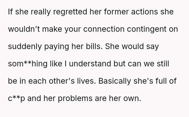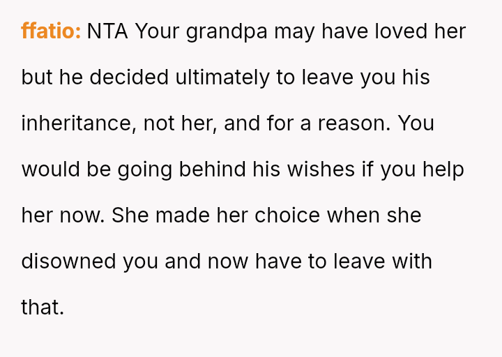Recently, after five years of silence, the mother reached out, citing health issues and mounting mortgage/bill problems, and asked the OP to use his inheritance to bail her out.