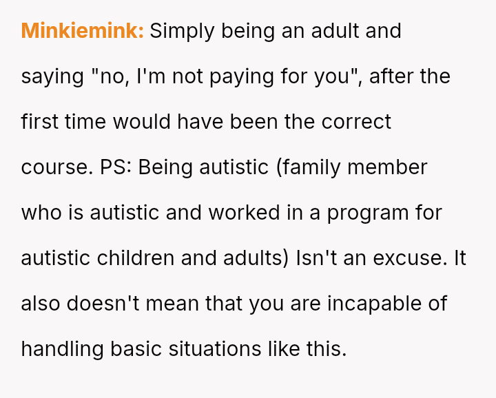 Was this a necessary measure to es**blish boundaries, or did it unnecessarily escalate a minor financial issue into an emotional conflict?