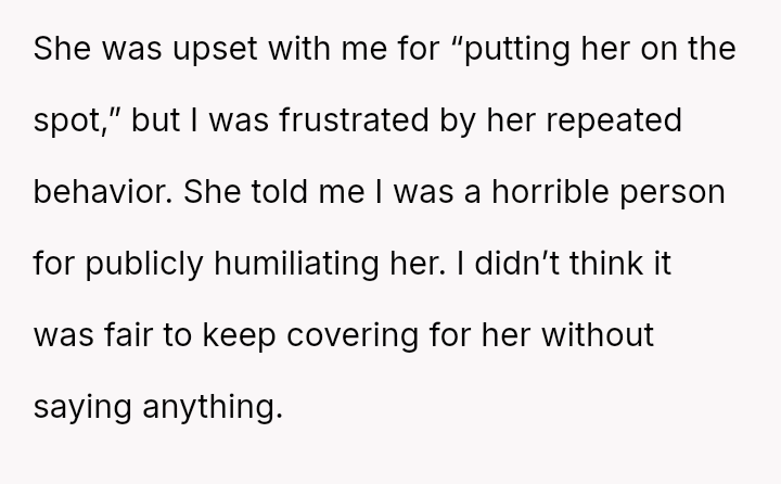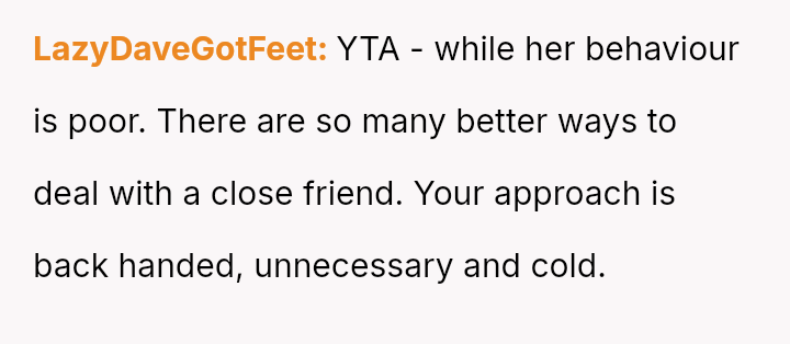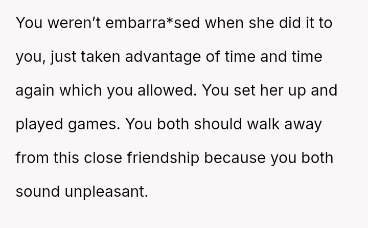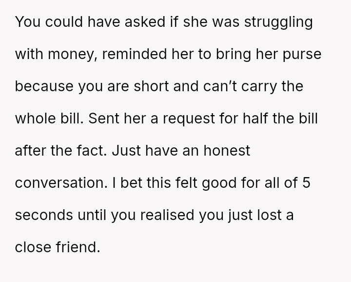 This led to an awkward situation where the friend became visibly upset and accused the user of public humiliation, leaving the user to question if her action was justified.
