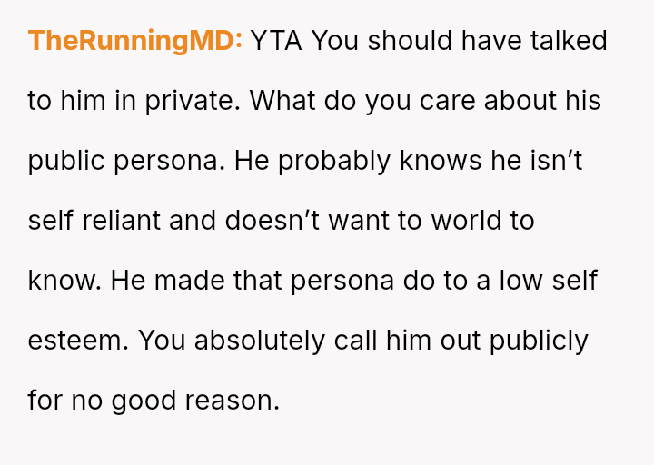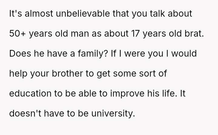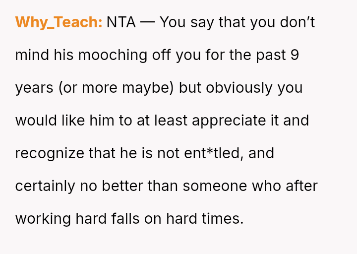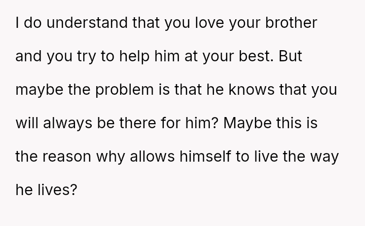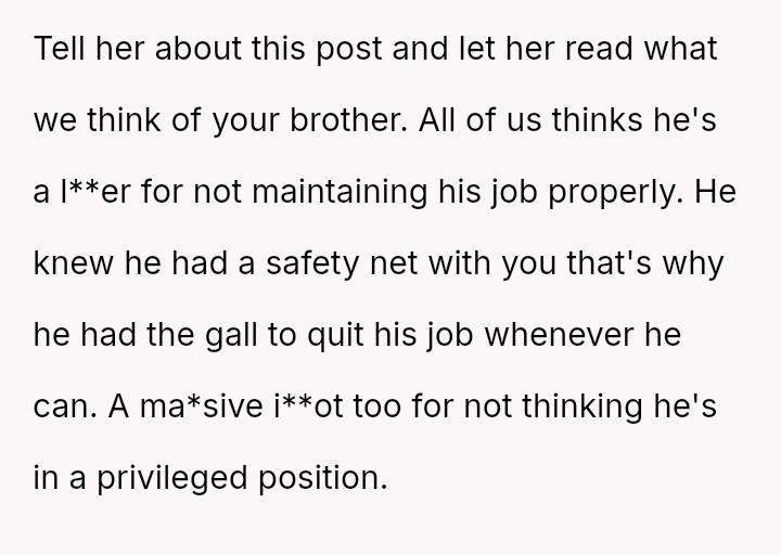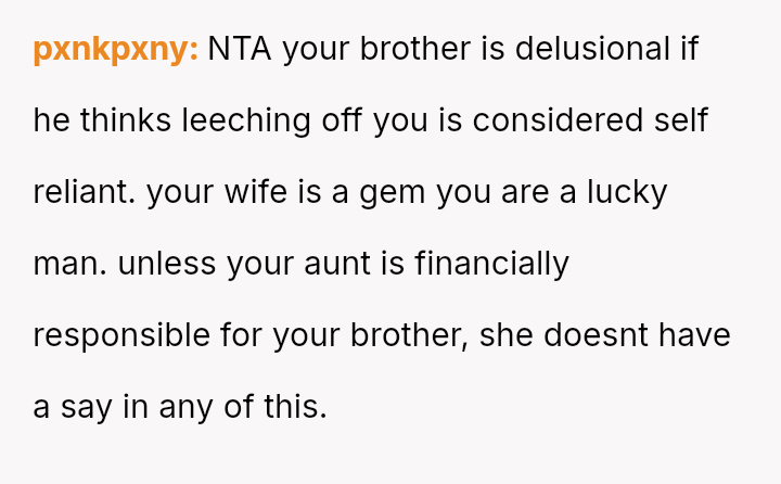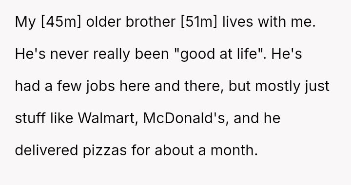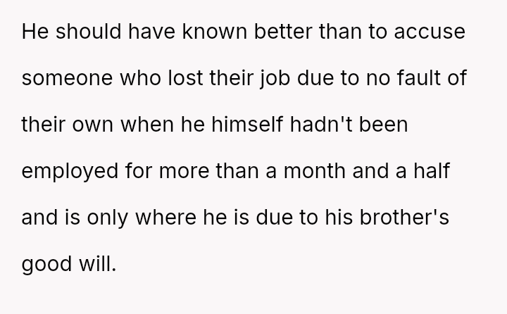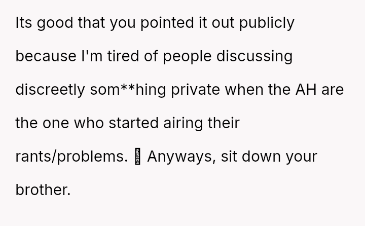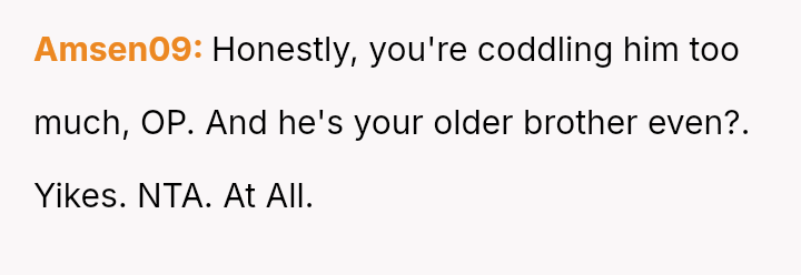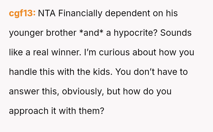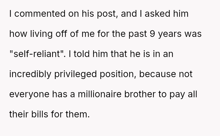 The original poster (OP) is facing conflict after publicly confronting his unemployed, dependent older brother for hypocrisy regarding self-reliance.