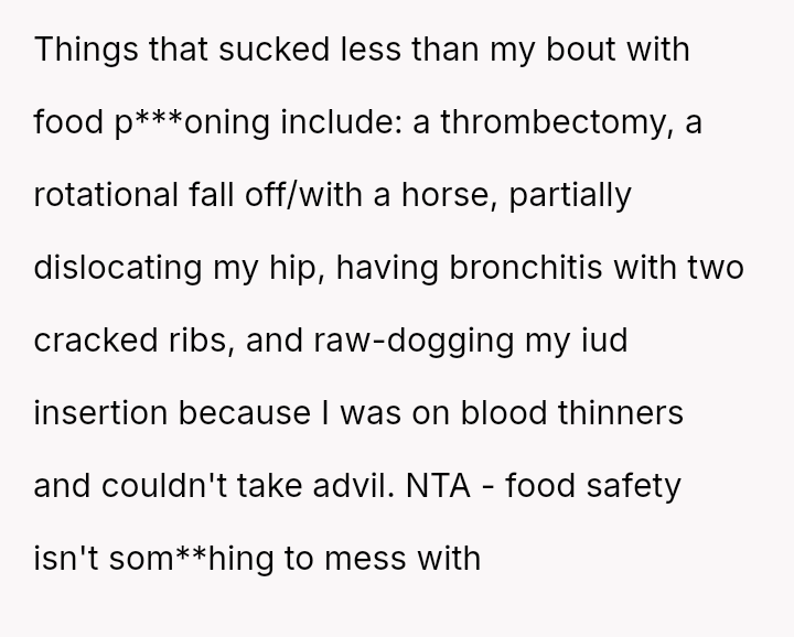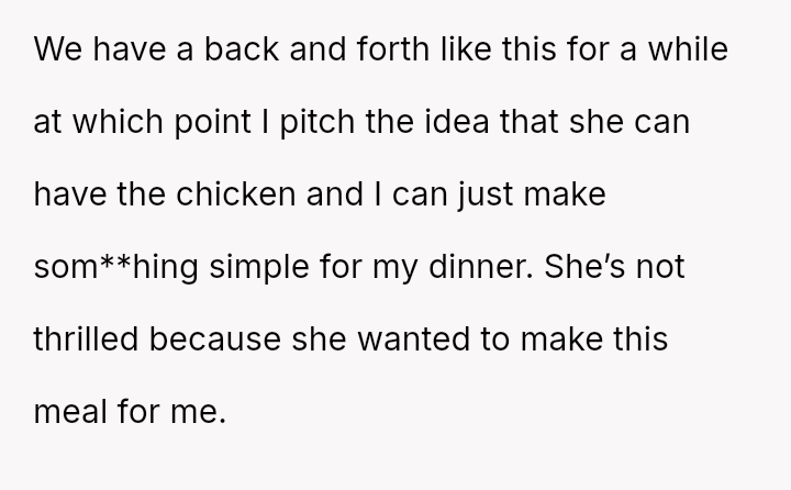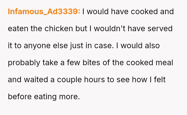 The original poster (OP) found himself in a difficult situation where his concern for food safety clashed directly with his wife's desire to salvage the planned meal, leading to significant tension.