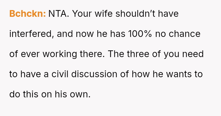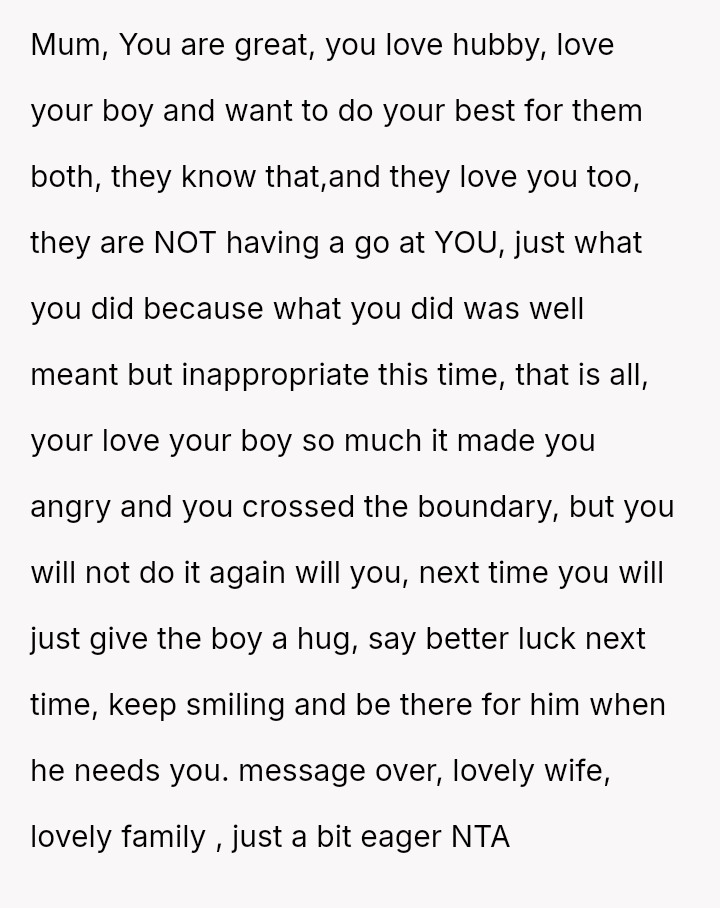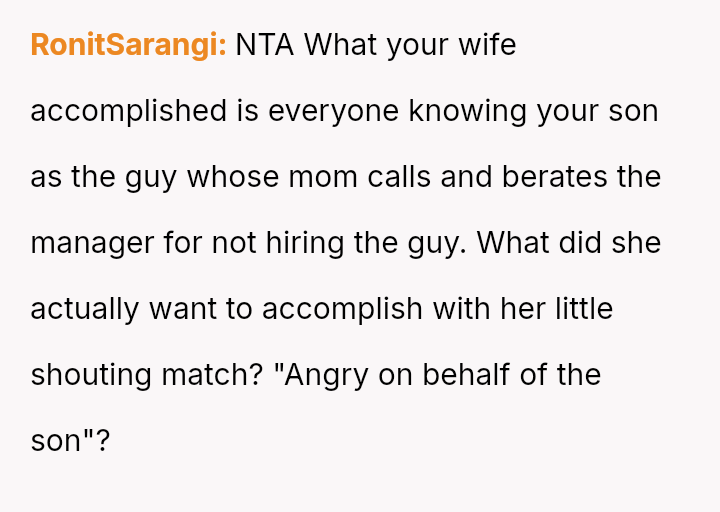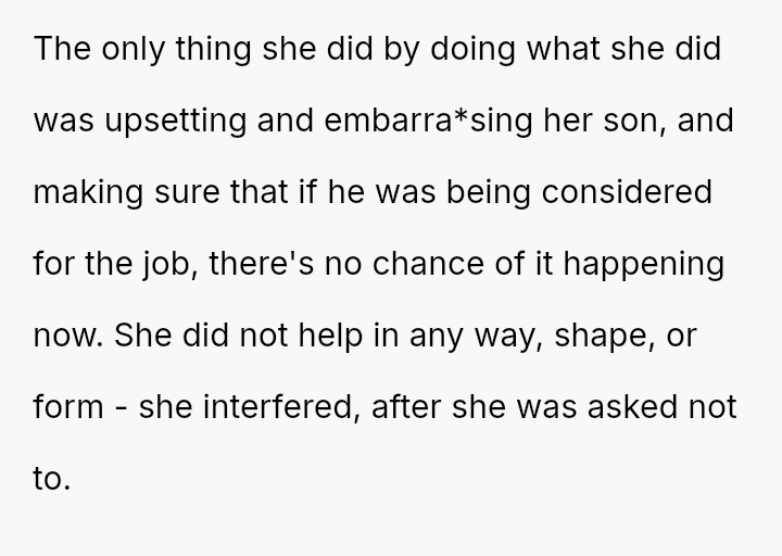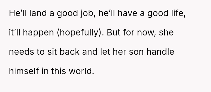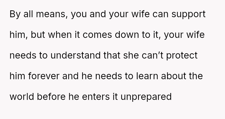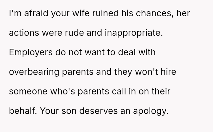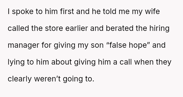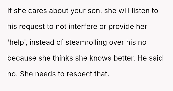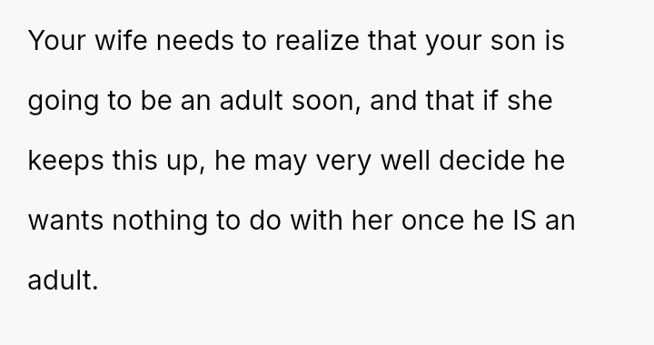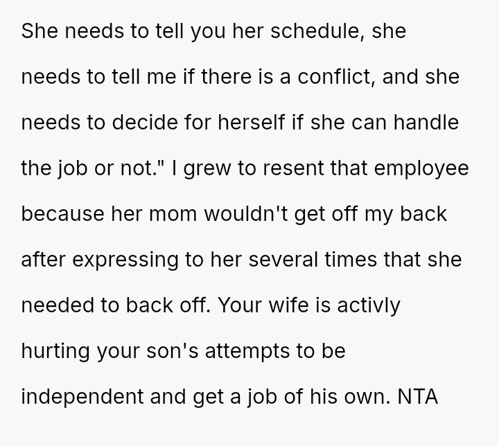 The father initially supported the son's wish for autonomy, but the mother's high level of emotional investment led her to overstep es**blished boundaries, causing embarra*sment for the son and tension within the marriage.