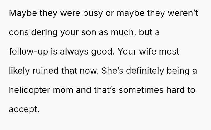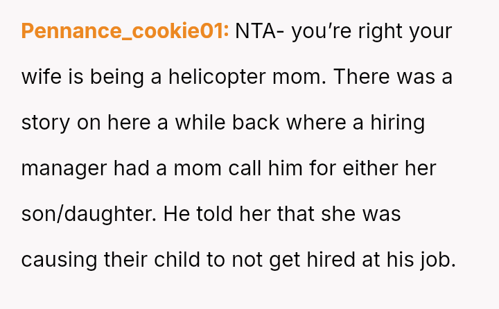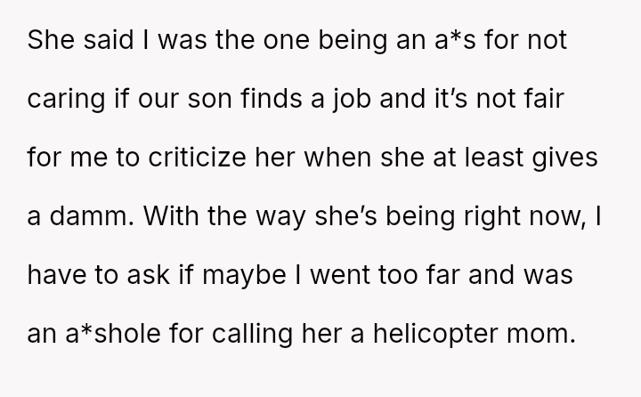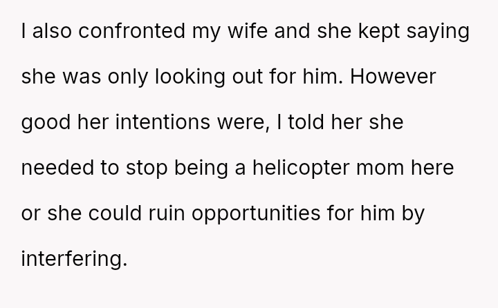 Was the father justified in labeling his wife's behavior as 'helicopter parenting' given the context of her protective intentions, or did his choice of words escalate a difficult situation unnecessarily?