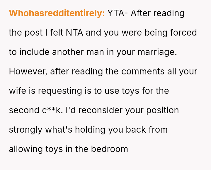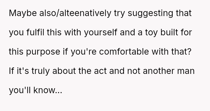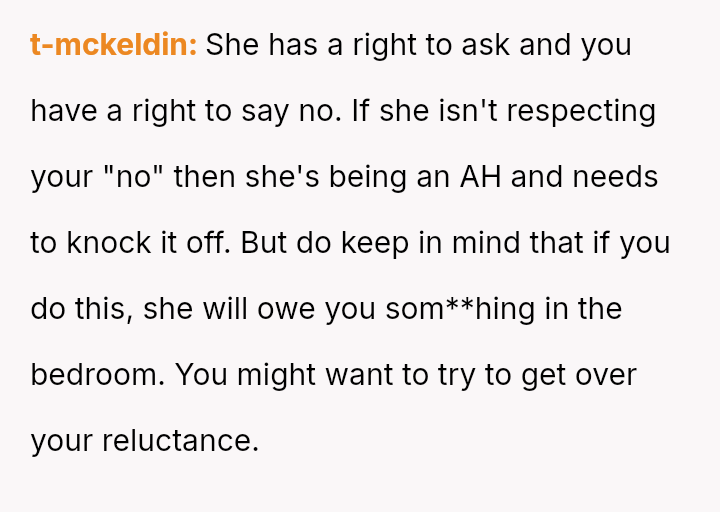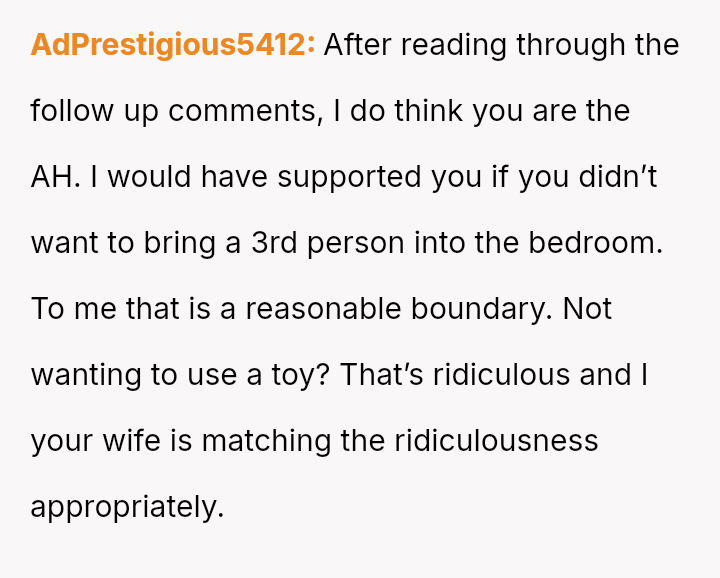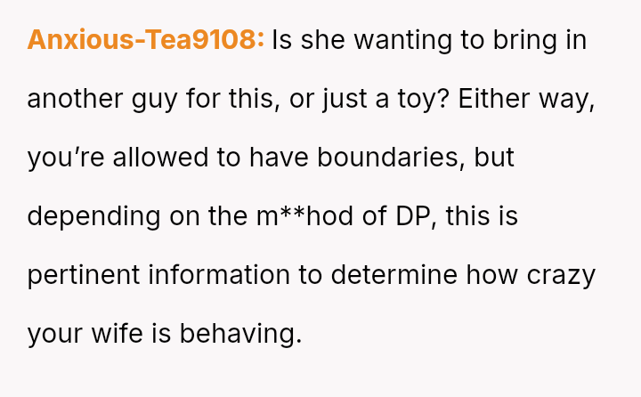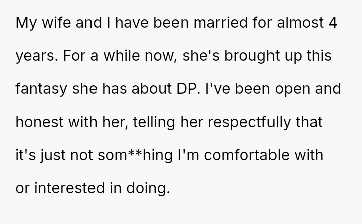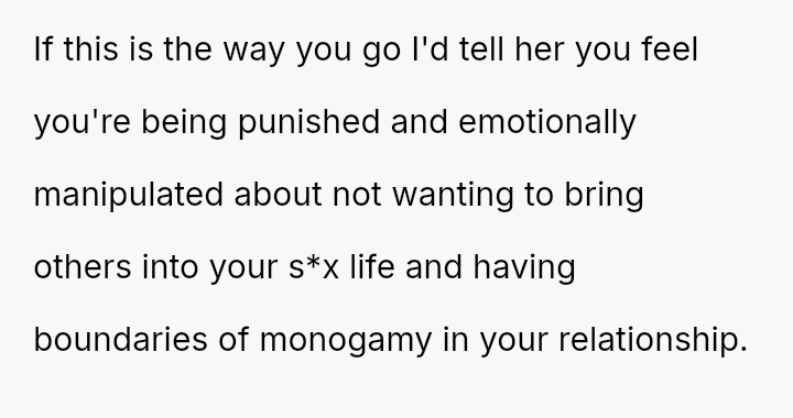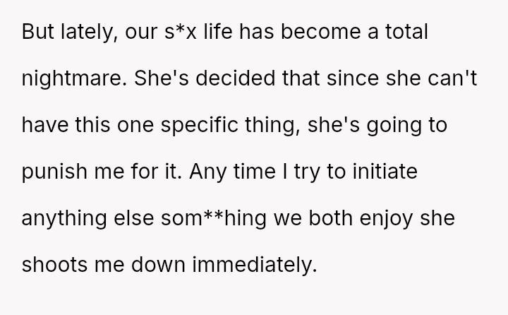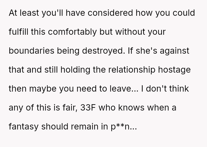The original poster (OP) is facing a severe marital conflict where their s*xual boundary regarding a specific fantasy has led to retaliatory behavior from their wife.