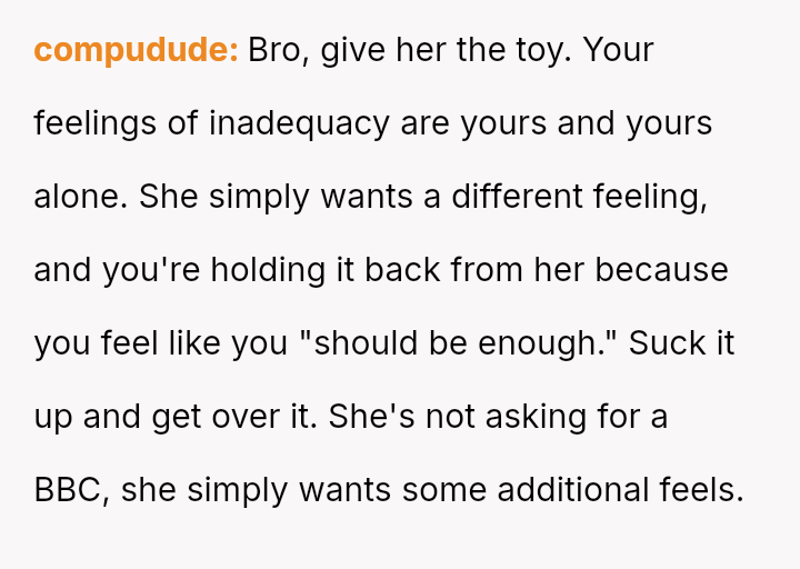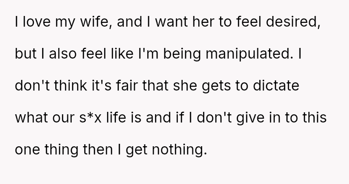 The OP feels their desire for mutual s*xual satisfaction is being held hostage by their partner's insistence on incorporating an activity the OP has clearly stated they are uncomfortable with.