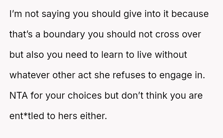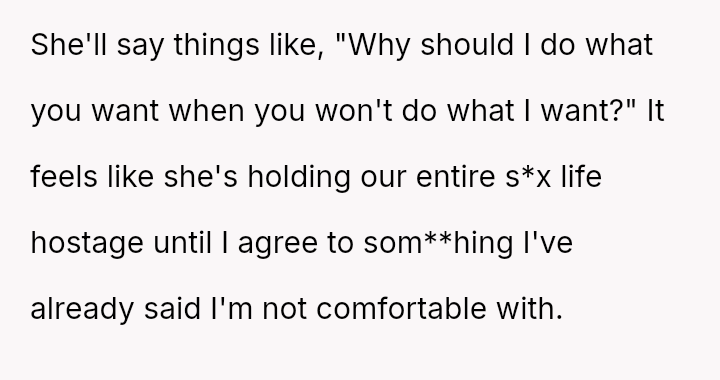 Is it acceptable for one partner to withdraw all s*xual intimacy as a form of leverage because the other partner refuses to compromise on a deeply held s*xual boundary, or does this refusal indicate a fundamental breakdown in respecting es**blished limits within the marriage?