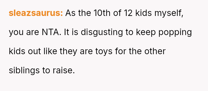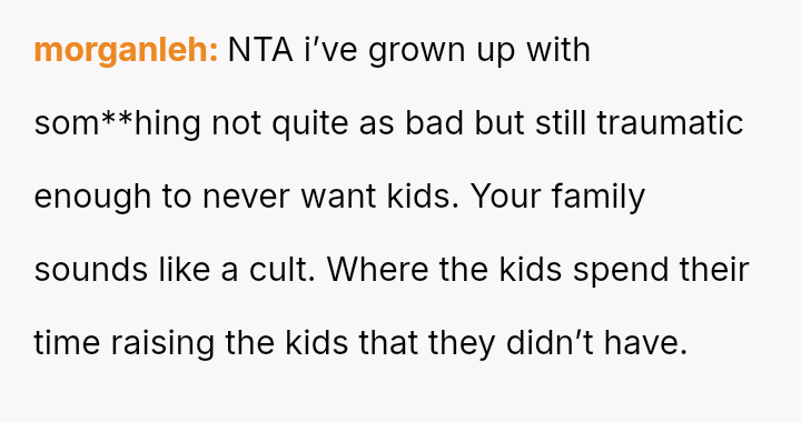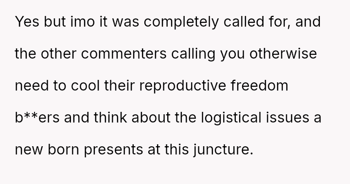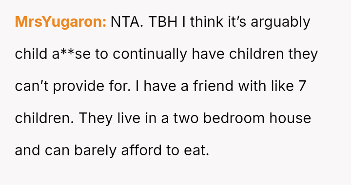 Considering the OP's history of shouldering significant caregiving responsibilities and their current stance against more children, was the blunt, negative reaction justified by the circumstances, or did the aggressive delivery cross a line into unacceptable cruelty?