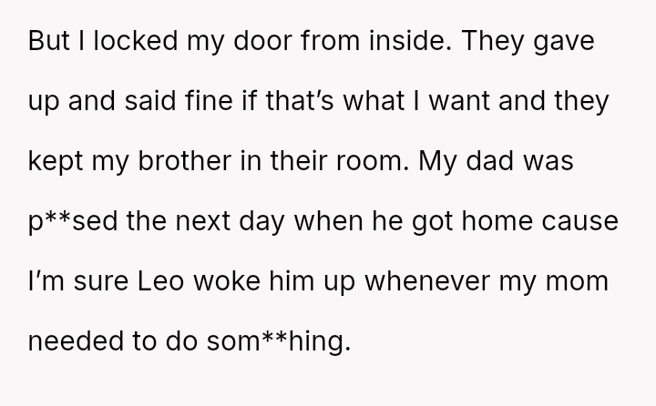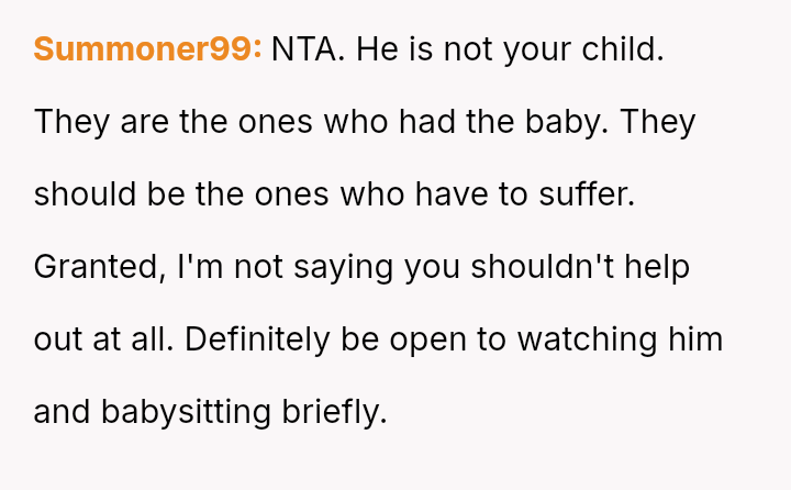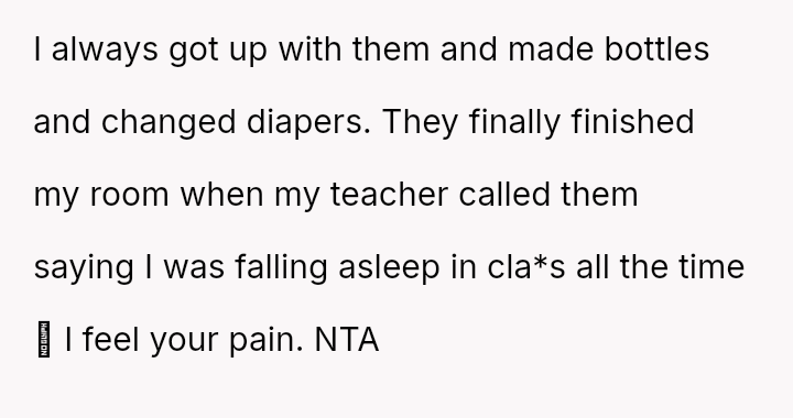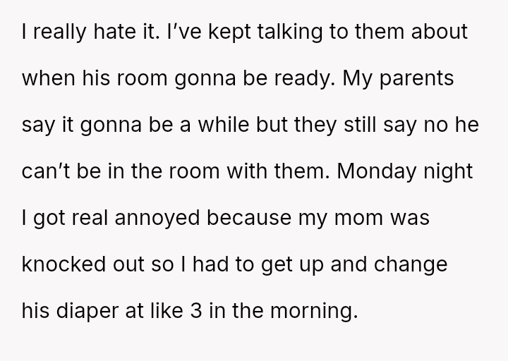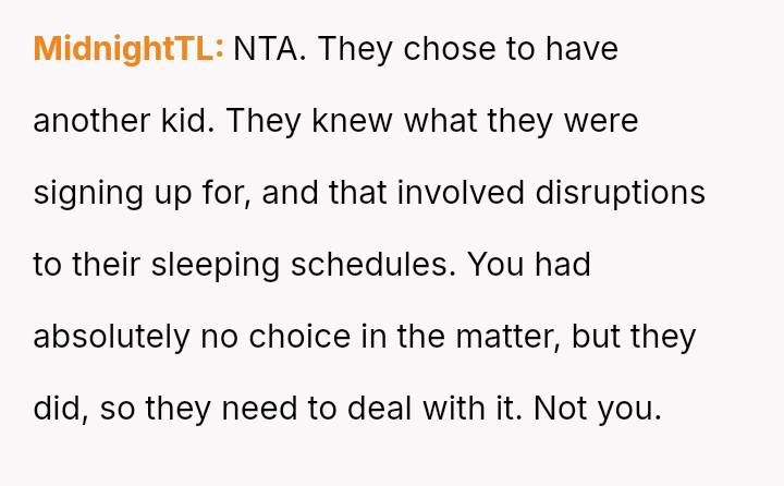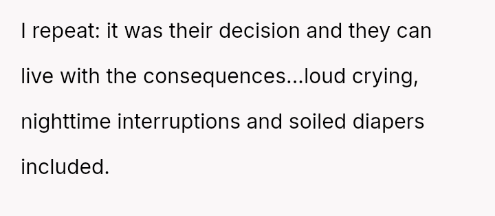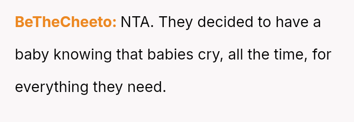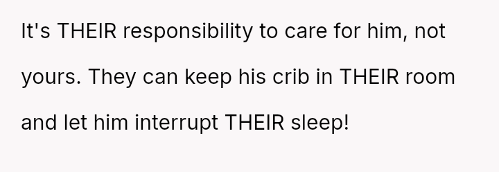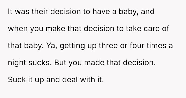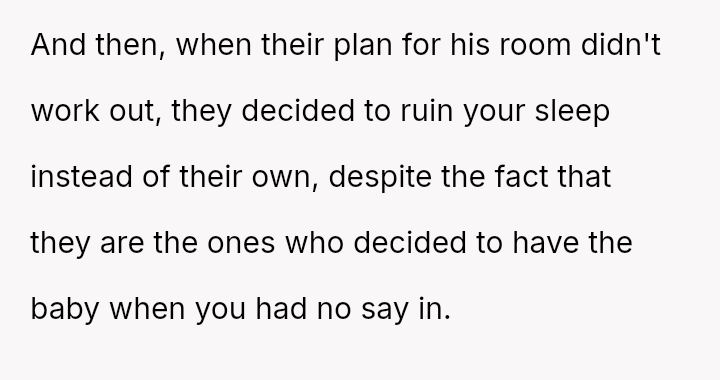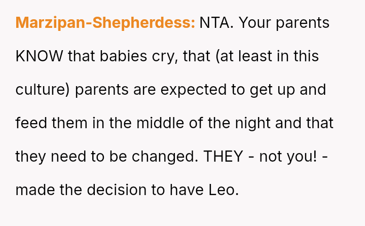 This action directly conflicted with the parents' expectation that the OP should contribute to managing the baby's nighttime needs while respecting the temporary living arrangements they had es**blished.