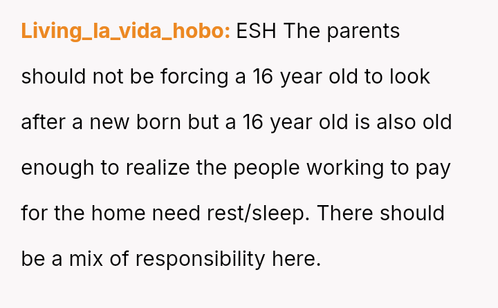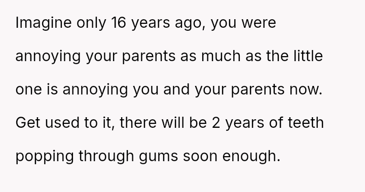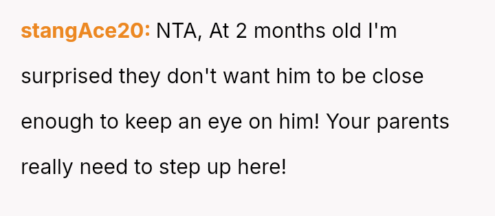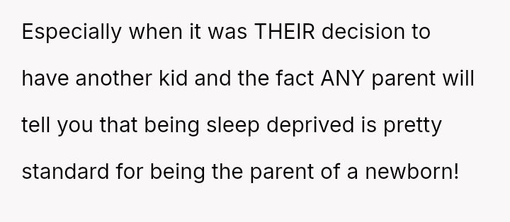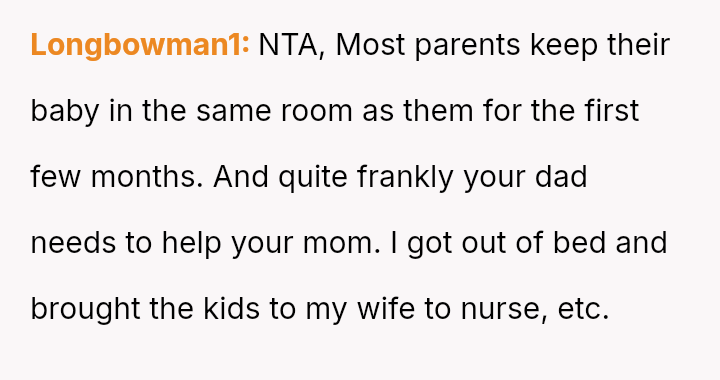 Was the OP justified in a*serting his need for sleep and space by physically relocating the infant, or did this move v***ate the expected familial duty to support the parents through this challenging transition period?