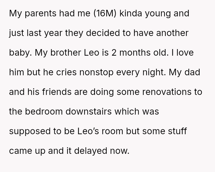 At just sixteen, he found his world upended by the arrival of his baby brother, Leo, whose incessant crying shattered the fragile peace of his nights.