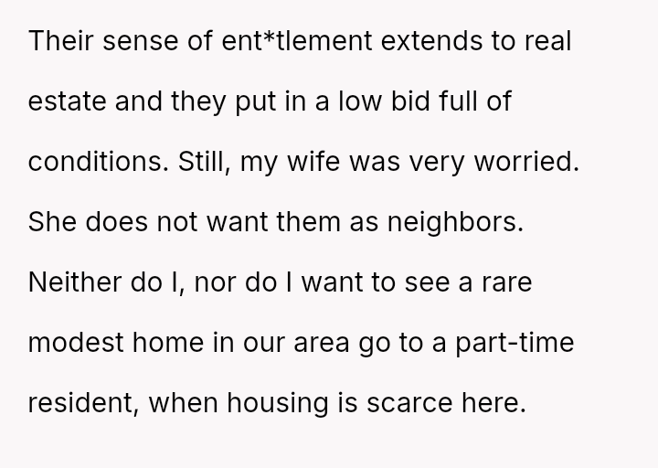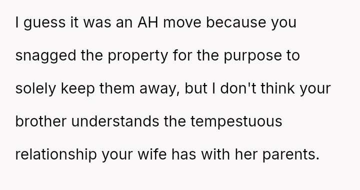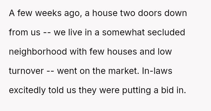 The original poster (OP) took decisive unilateral action to prevent his in-laws from moving nearby, driven by concerns over es**blished boundary issues and the desirability of the local housing stock.