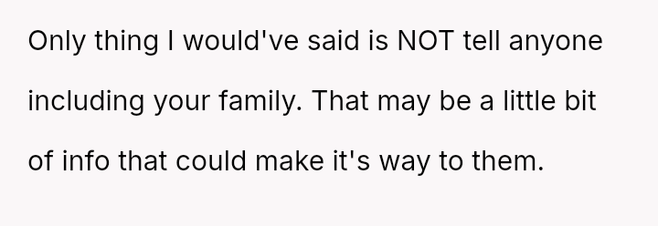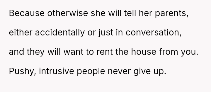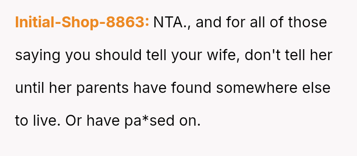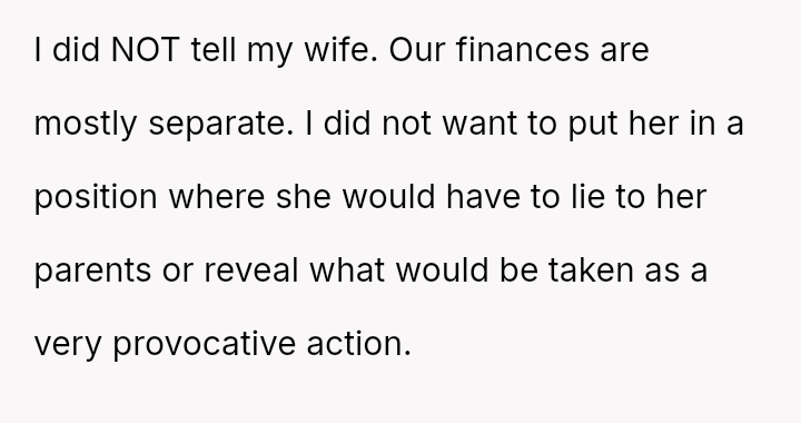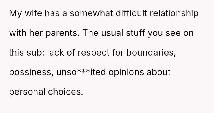This action, while protecting his immediate family's privacy and space, placed his wife in a difficult, potentially dishonest position regarding her parents' reaction.