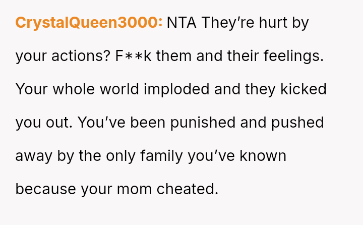 The original poster (OP) is experiencing deep hurt and alienation following the revelation of their parentage and the subsequent family tension.