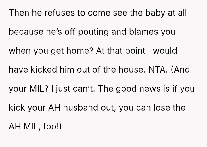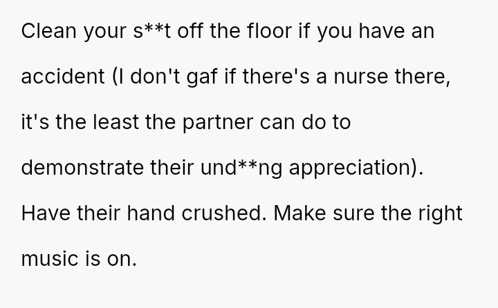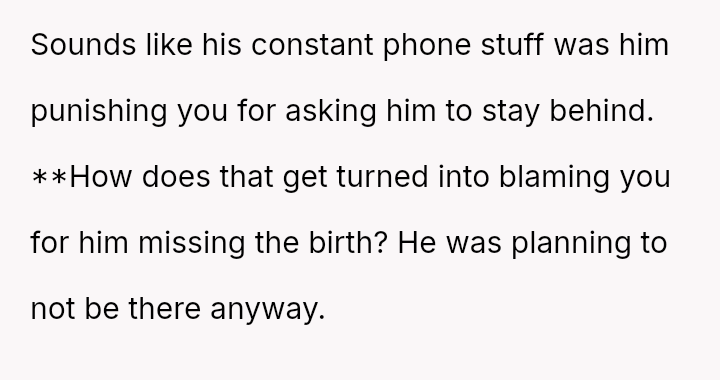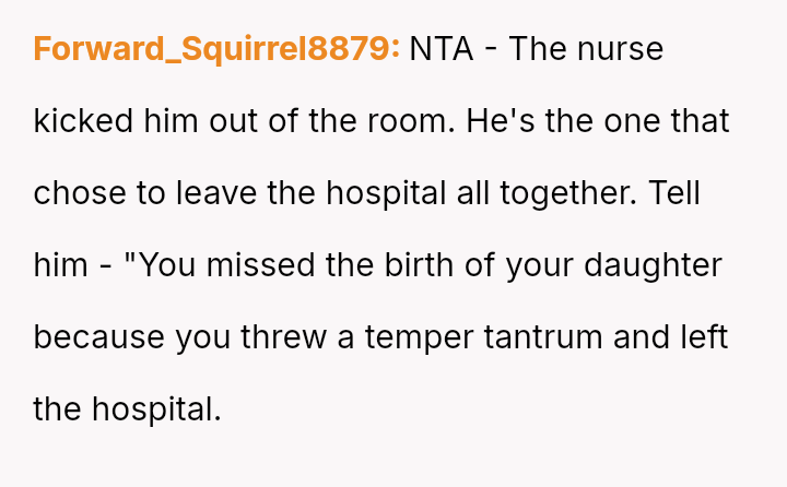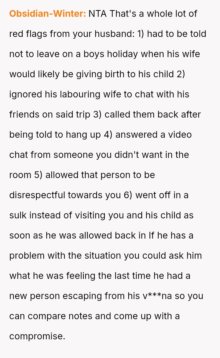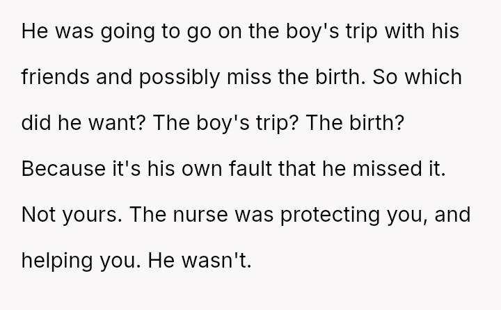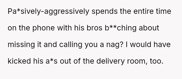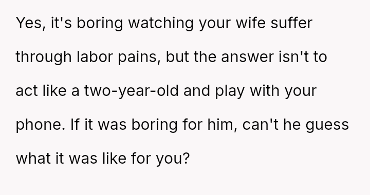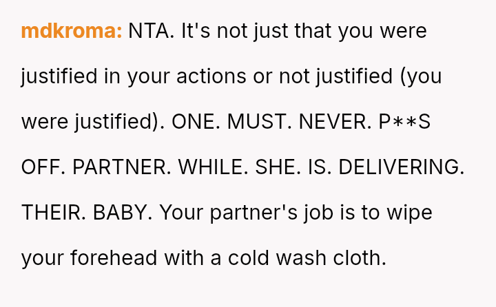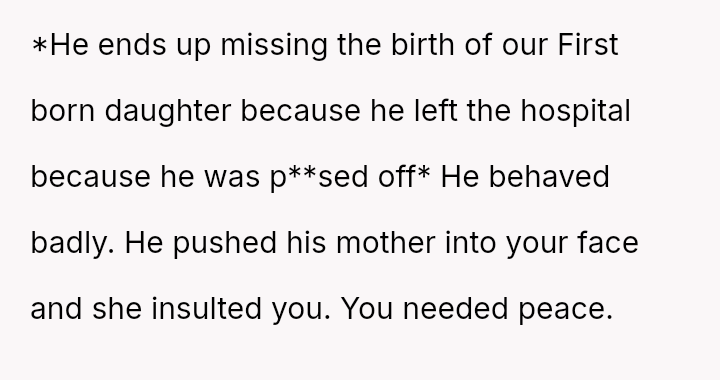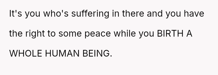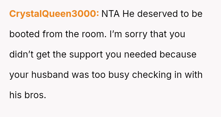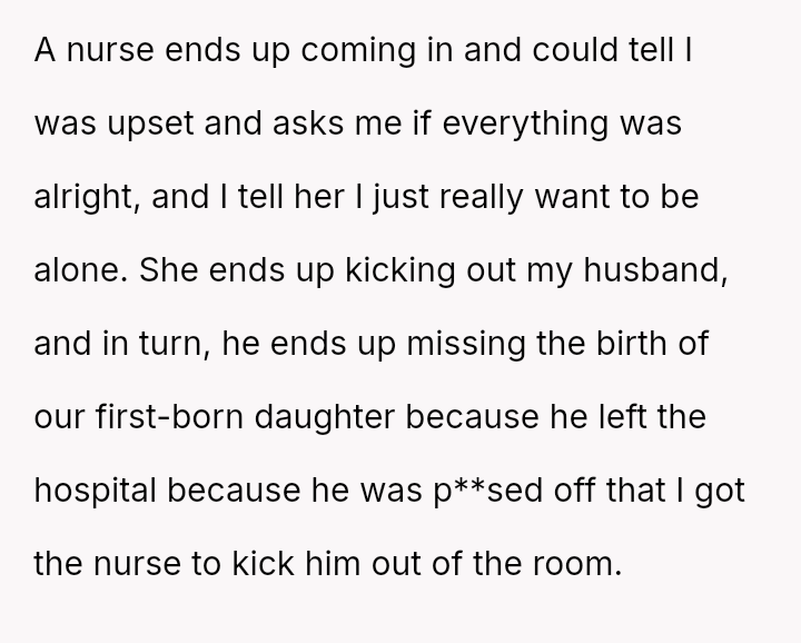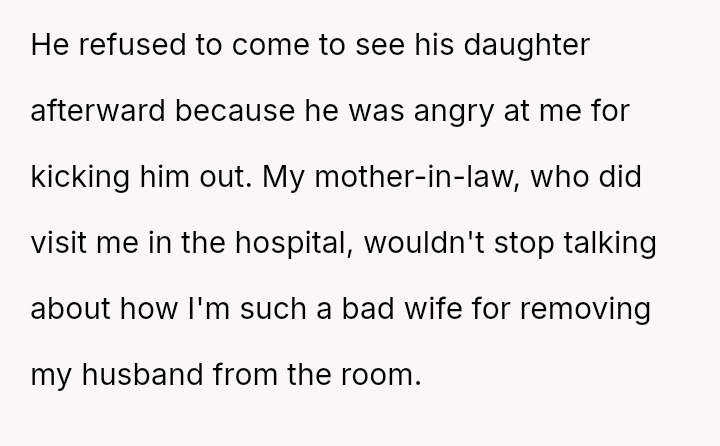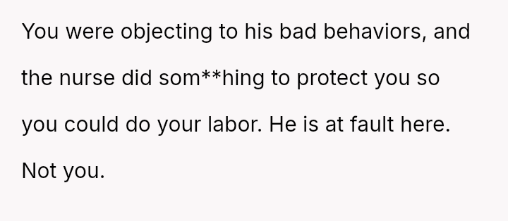 Given the husband's persistent disregard for the OP's pain and requests, was removing him from the delivery room a necessary act of self-preservation, or did this action cross a line by preventing him from witnessing the birth of his first child?
