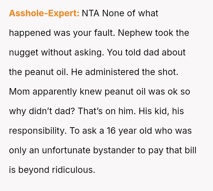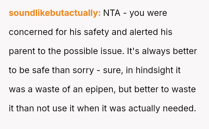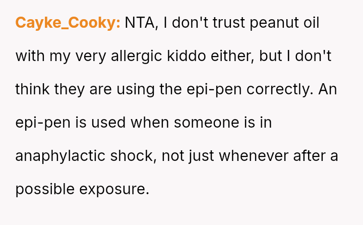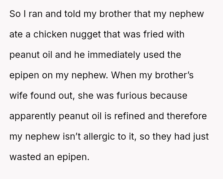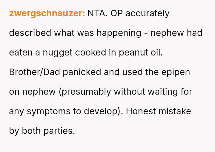The original poster (OP) acted out of extreme caution due to the nephew's severe, life-threatening peanut allergy, leading to the emergency use of an EpiPen.