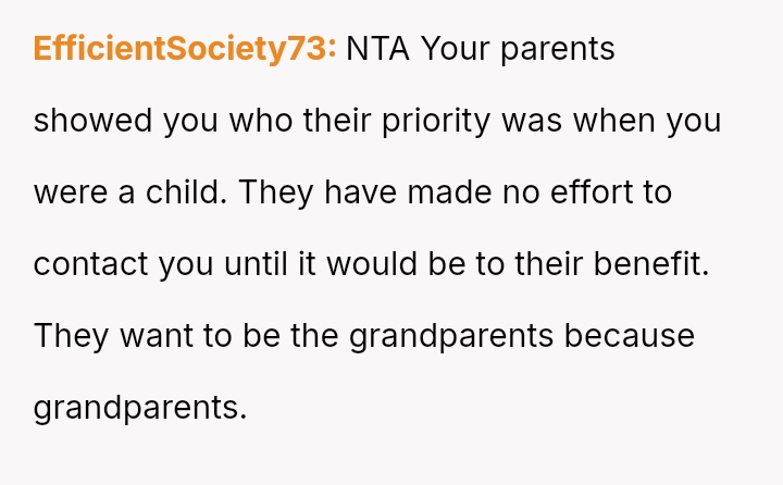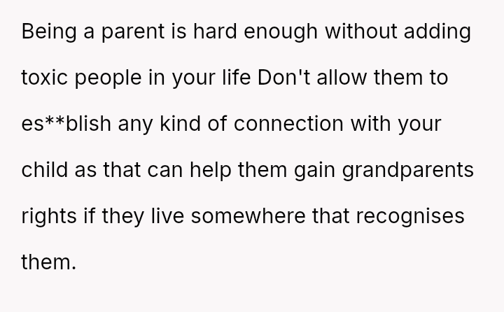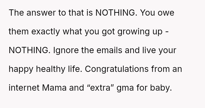The user ignored their initial attempts to connect until two days prior, when she sent a single email stating clearly that they would never know her child or be part of their lives, demanding they cease all contact.