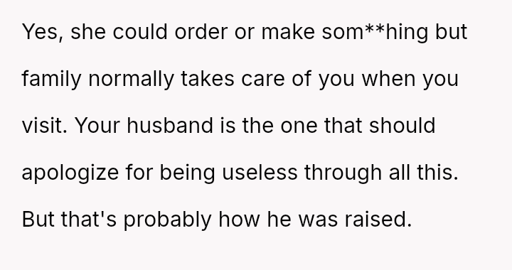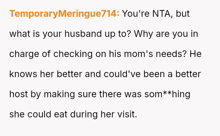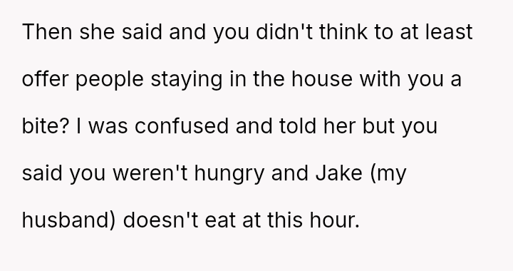 This created a major conflict where the OP prioritized immediate clarity and personal need (due to hunger), while the MIL prioritized a perceived obligation of hospitality and deference.