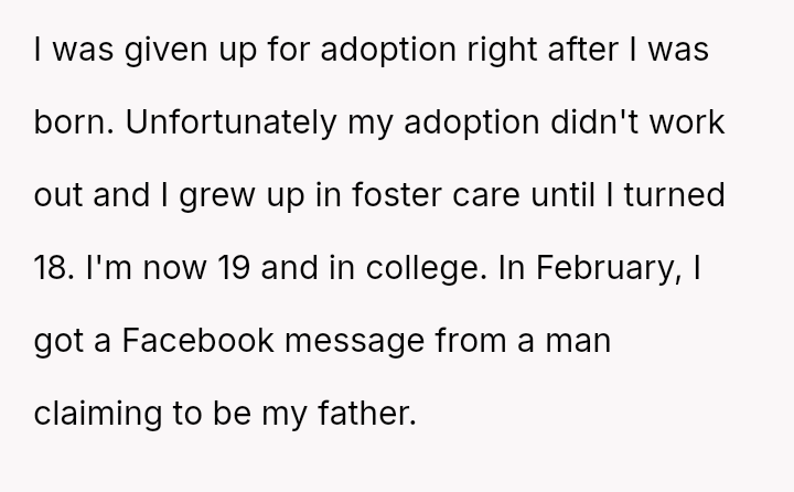 Now in college, a sudden message from a man claiming to be her father shattered the fragile walls she had built, igniting a storm of hope and trepidation she wasn’t ready to face.