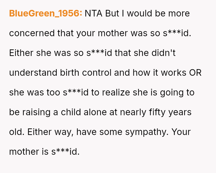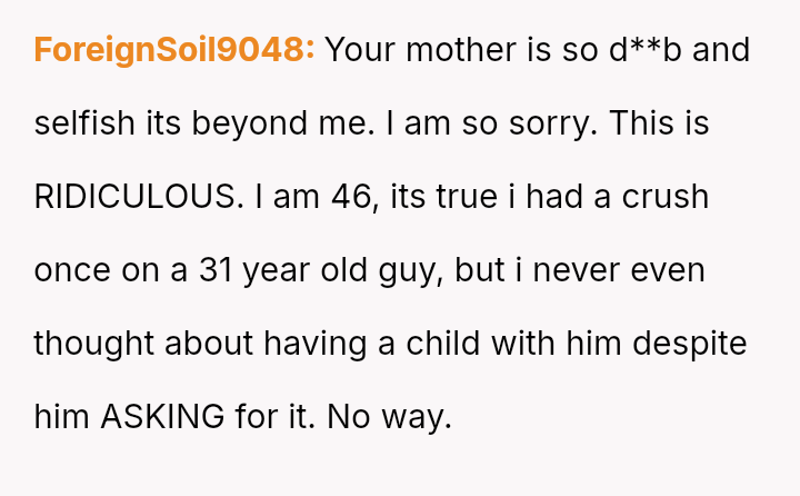 The user reports feeling significant discomfort regarding their 47-year-old mother having a baby with a 22-year-old boyfriend, who is four years younger than the user.