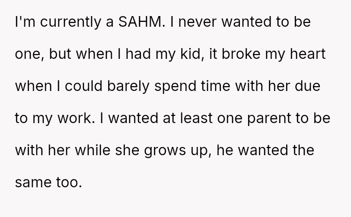 She sacrificed her career and financial independence to be the constant presence her child needed, believing in a shared partnership and mutual support.