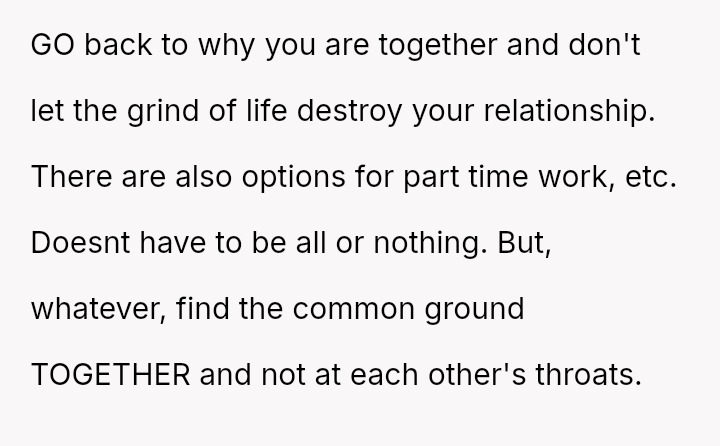 The original poster (OP) made a significant financial and career sacrifice to prioritize childcare, expecting a partnership in return.
