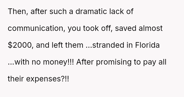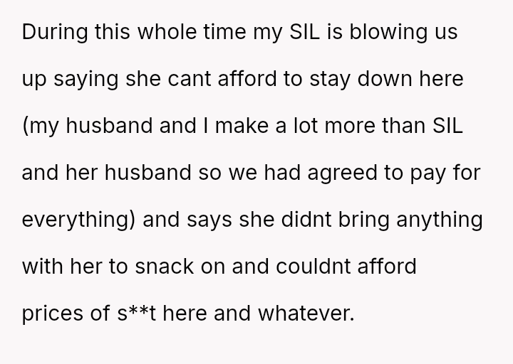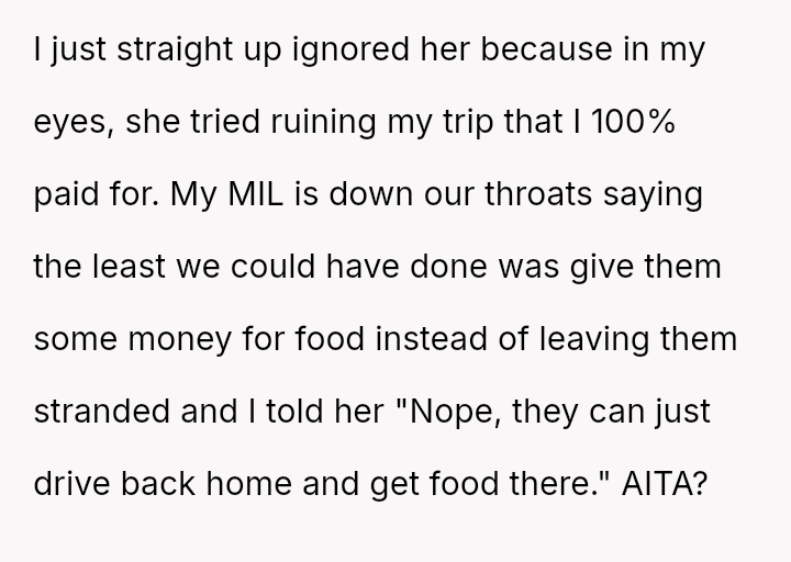 Did the OP act appropriately by immediately leaving the location and refusing to financially support the SIL after the major rule v***ation and subsequent expectation of payment, or should they have prioritized maintaining group harmony and finding an alternative solution on-site?