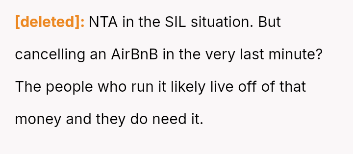 This action forced the OP to unilaterally cancel the trip arrangements they had fully funded, leading to significant financial change and immediate estrangement from the SIL.
