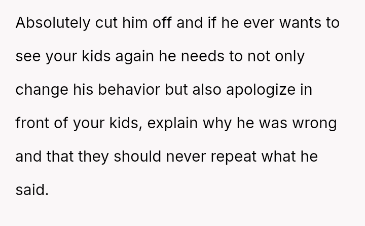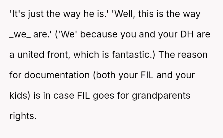 Given the significant emotional damage caused to the children and the failure of direct communication, is it justified for the OP and their husband to enforce a complete temporary ban on contact until the father-in-law acknowledges his behavior, apologizes, and stops undermining the poster to their children?
