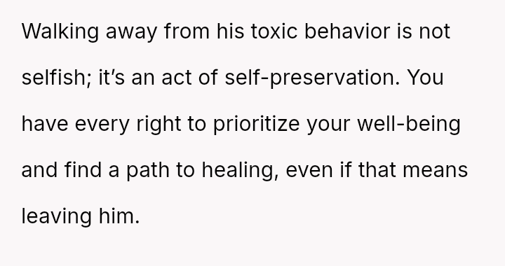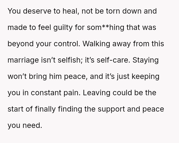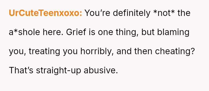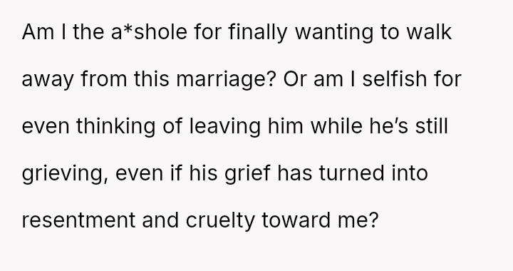 Is the OP selfish for prioritizing her mental survival and walking away from a marriage defined by a**se and in***elity, or is she morally obligated to stay and support a grieving partner, regardless of his cruel behavior toward her?