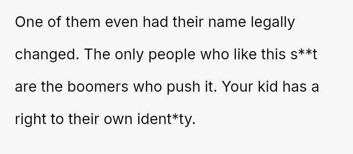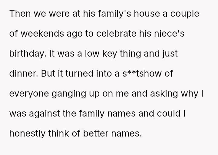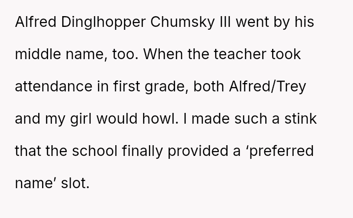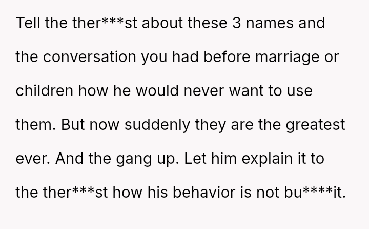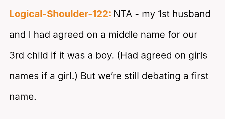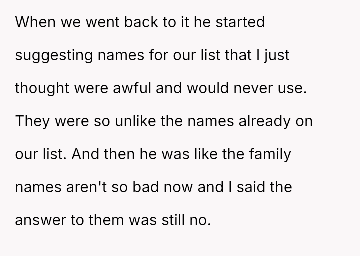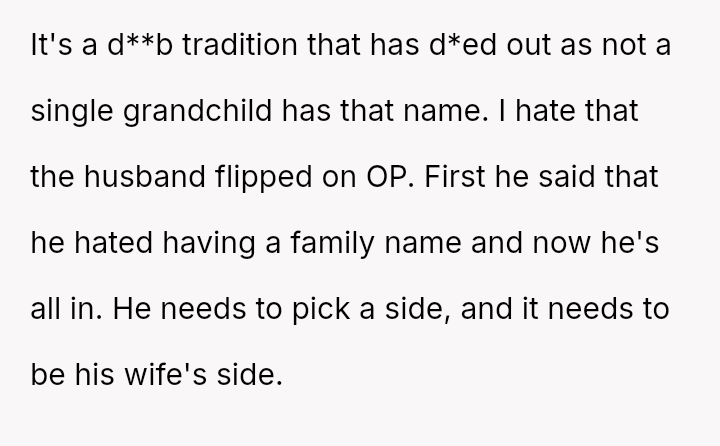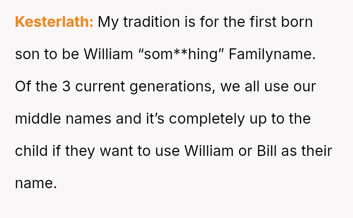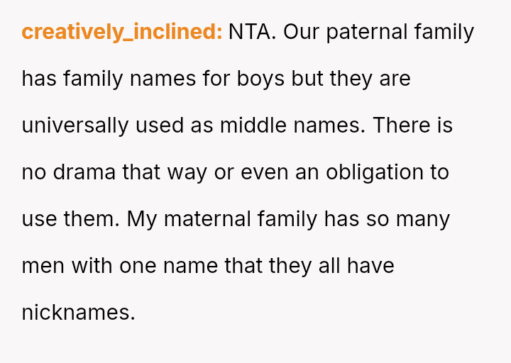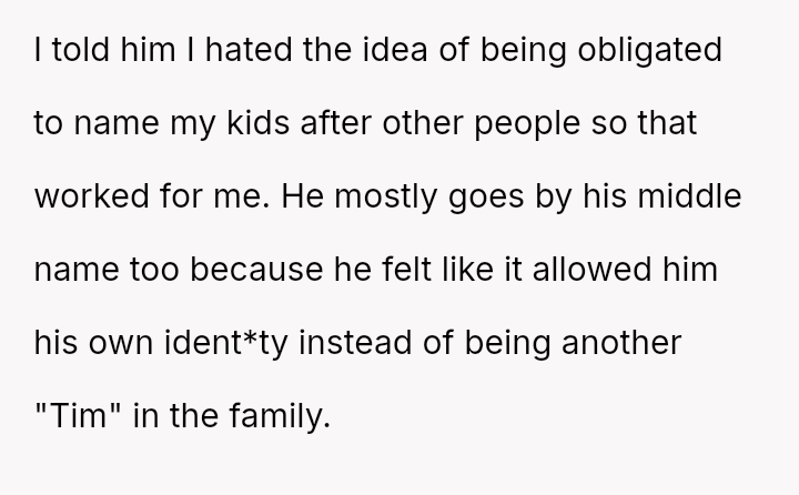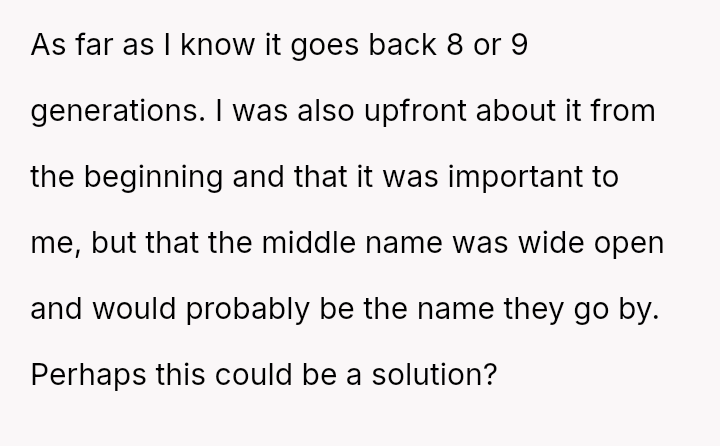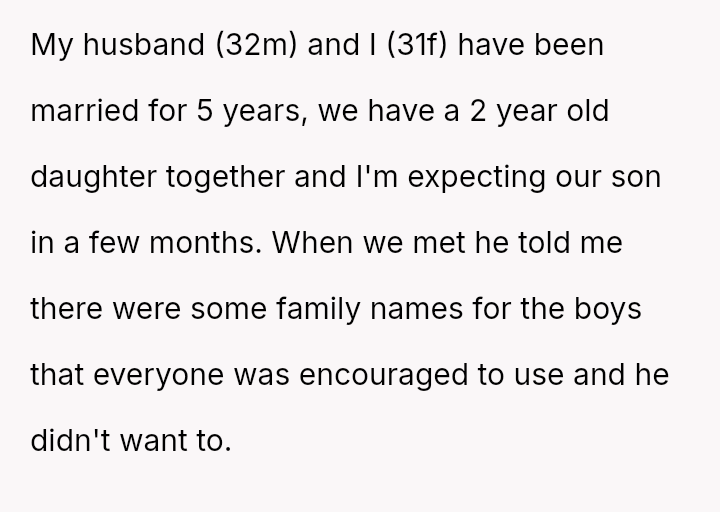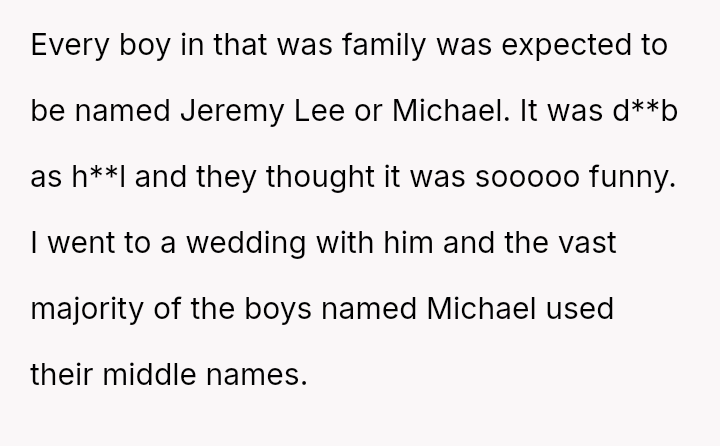 When they first met, the husband mentioned family names for boys that they were encouraged to use, a practice the user disliked, which aligned with the husband's own preference, as he primarily uses his middle name to maintain his own ident*ty.