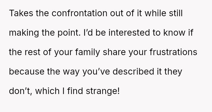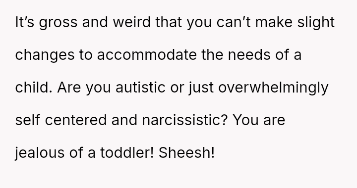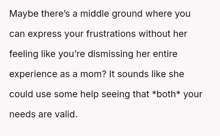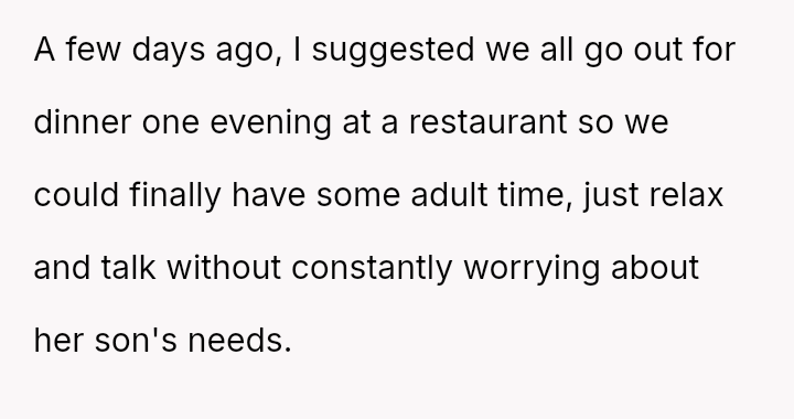 What was once shared joy has morphed into an exhausting routine of accommodations and sidelined voices, leaving her feeling invisible within her own family. She longs for the days when family time was about connection, not schedules and safety nets.