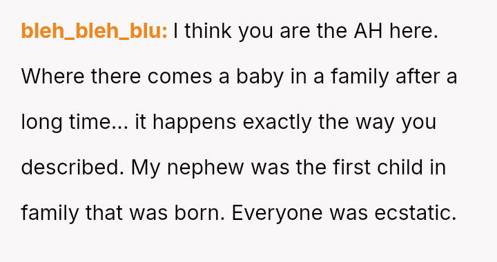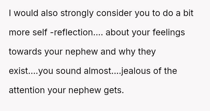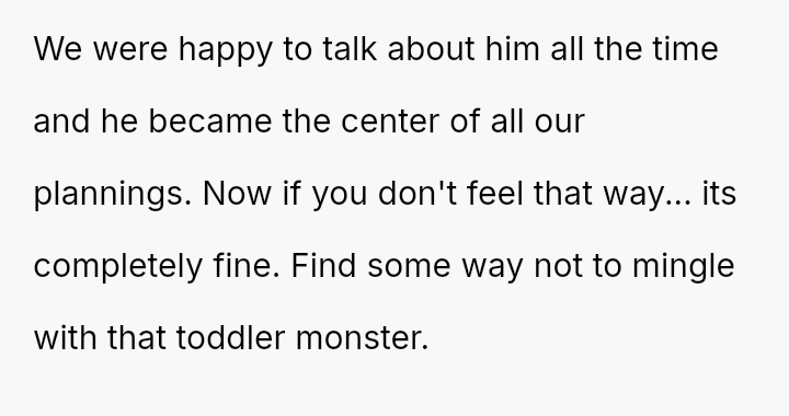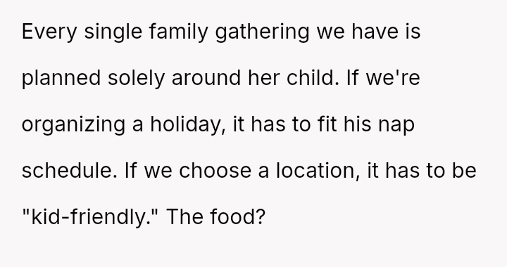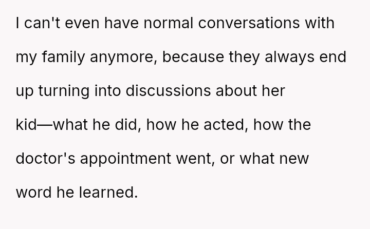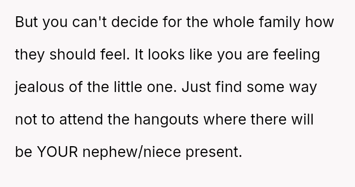 The original poster is experiencing significant frustration because family activities and discussions consistently revolve entirely around their sister's toddler, leading to a feeling of being sidelined and unheard.