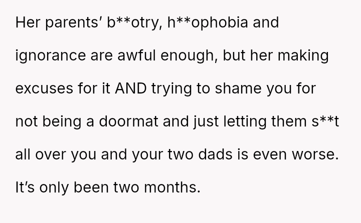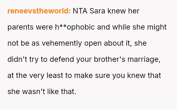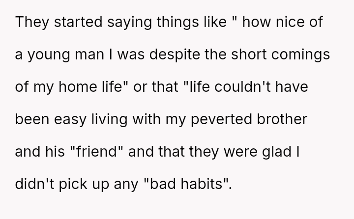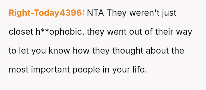 The original poster (OP) experienced significant emotional pain when his partner's parents insulted the upbringing provided by his brother and brother-in-law.