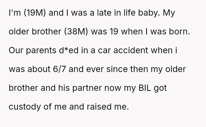 A young man, shaped by loss and love, grew up under the unwavering care of his older brother and brother-in-law after their parents tragically d*ed.