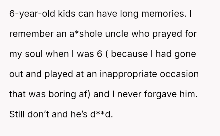 Readers must weigh the severity of the boundary v***ation against the importance of maintaining family relationships.