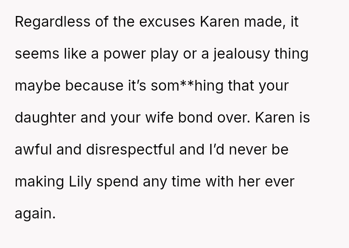 Last weekend, the paternal grandmother (referred to as 'Karen') was babysitting Lily while the parents had a date night.