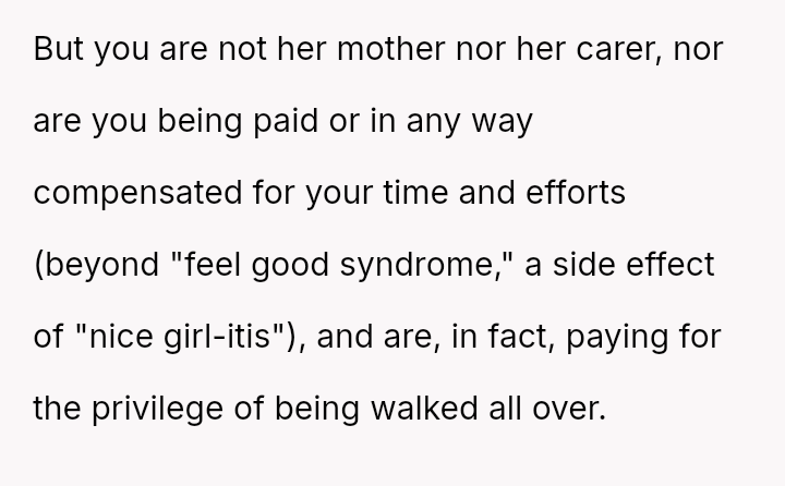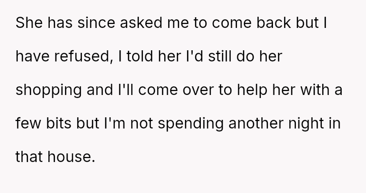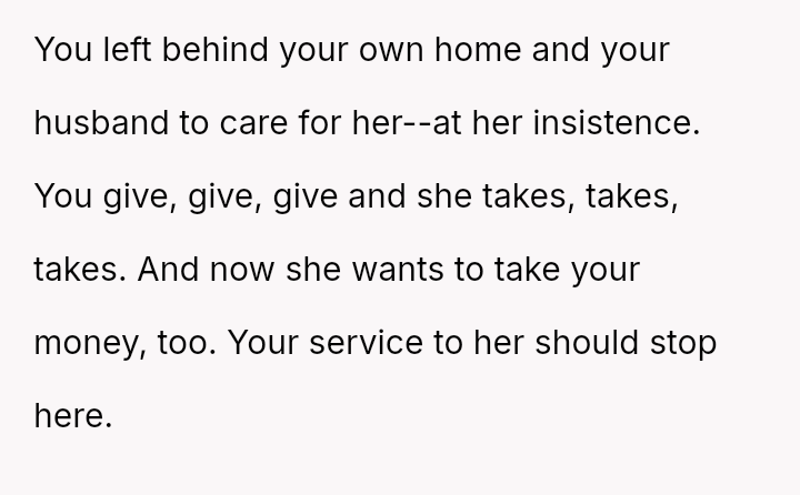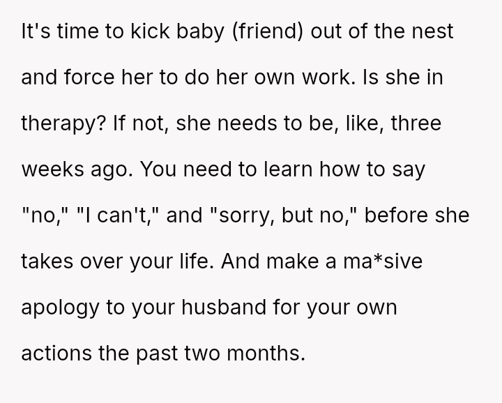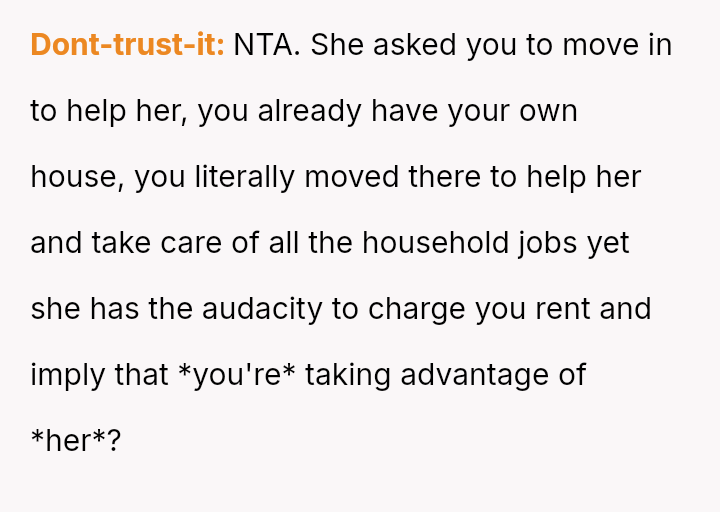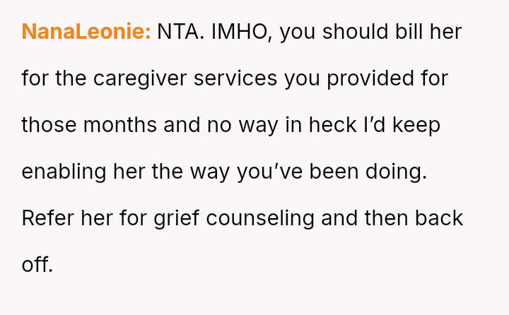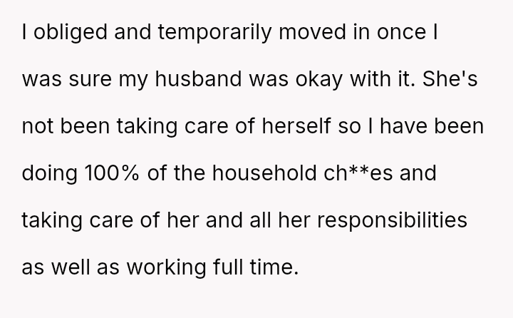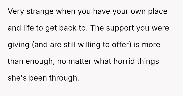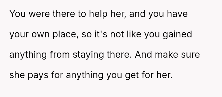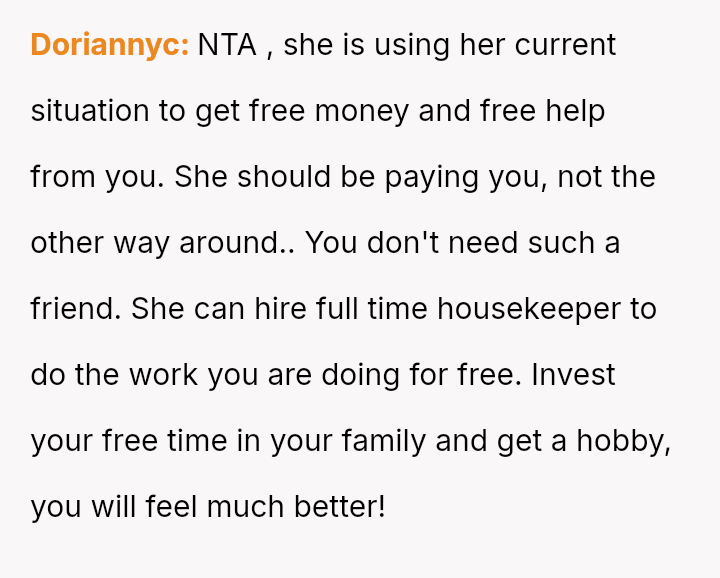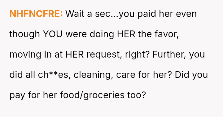 The OP provided extensive, unpaid care and labor while living in the friend's home, believing the arrangement was born out of compa*sion during a crisis.